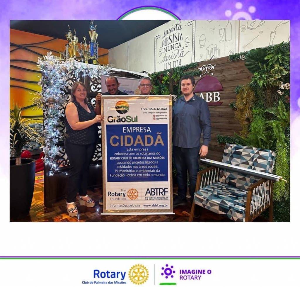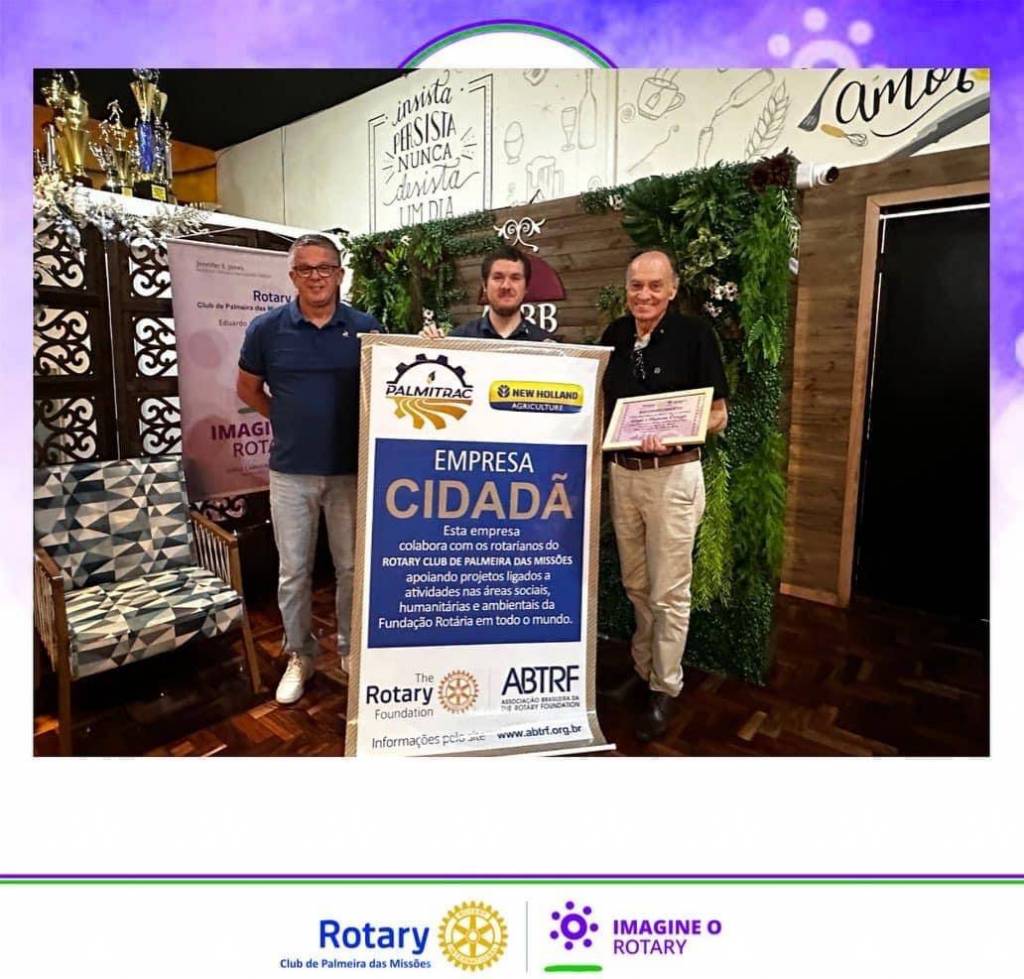 Aproveitando a oportunidade, foi entregue um Reconhecimento ao Companheiro Sérgio Corazza e Maria Nazarena pelo prêmio de melhor Concessionária New Holland do Brasil pela segunda vez. Também foi entregue os banners aos Proprietários das Empresas Cidadãs que contribuíram esse ano para a Fundação Rotária, são elas Grão Sul, Palmitrac e Tornearia do Zé.