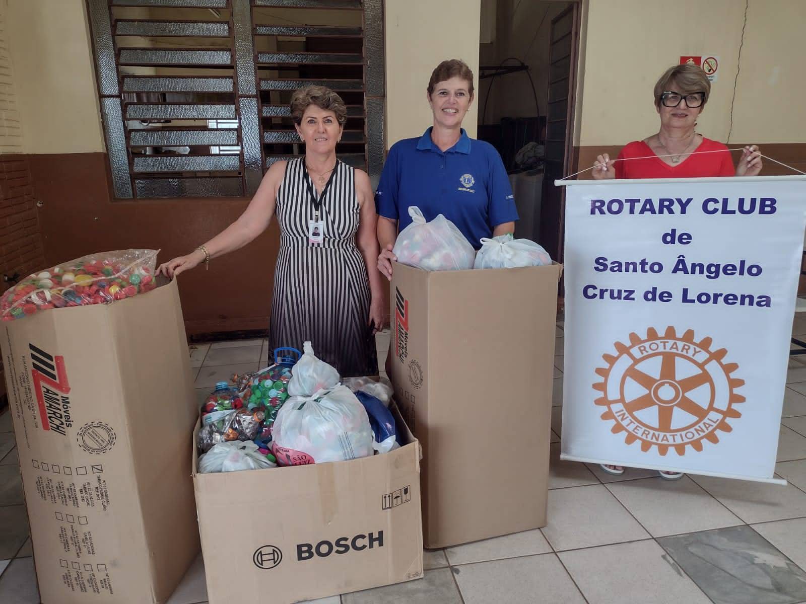 Em 24 de março foram entregues ao Lions tampinhas e blisters arrecadadas pelo Rotary de Santo Ângelo Cruz de Lorena e Lar da Menina.