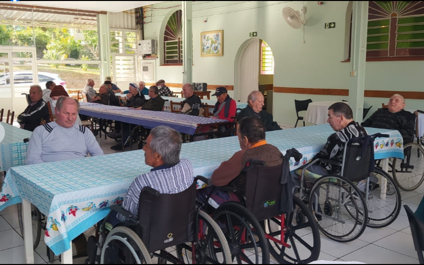 TARDE FESTIVA MUSICAL NO LAR VILA ITAGIBA. FORAM OFERECIDOS SALGADINHOS, CACHORRO-QUENTE E UMA LINDA TORTA DOCE AOS 76 IDOSOS DO LAR. UM MÚSICO ESTAVA TOCANDO VIOLÃO E CANTANDO AOS IDOSOS. A IRMÃ ANJA CARVALHO AGRADECEU A TARDE FESTIVA E PARABENIZOU O NOSSO CLUBE.