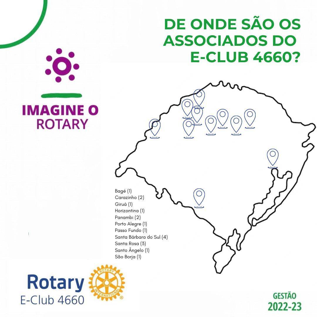 Rotary E-Clubs são considerados pelo Conselho Diretor do RI como sendo globais. Embora cada E-Club seja designado a um distrito, os associados podem ser de qualquer país ou área geográfica onde o Rotary esteja presente.