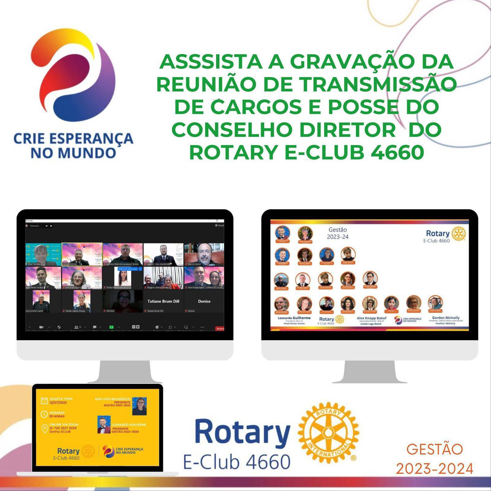 Assista na integra a Reunião de Transmissão de Cargos e Posse do Conselho Diretor do Rotary E-Club do Distrito 4660 para Gestão 2023-24. O evento contou com a presença de importantes autoridades rotarias distritais e convidados. Link de acesso: https://drive.google.com/file/d/1sMGQEDHo7x7RvyKLutd-jT0TJi08AHqV/view?usp=drivesdk
