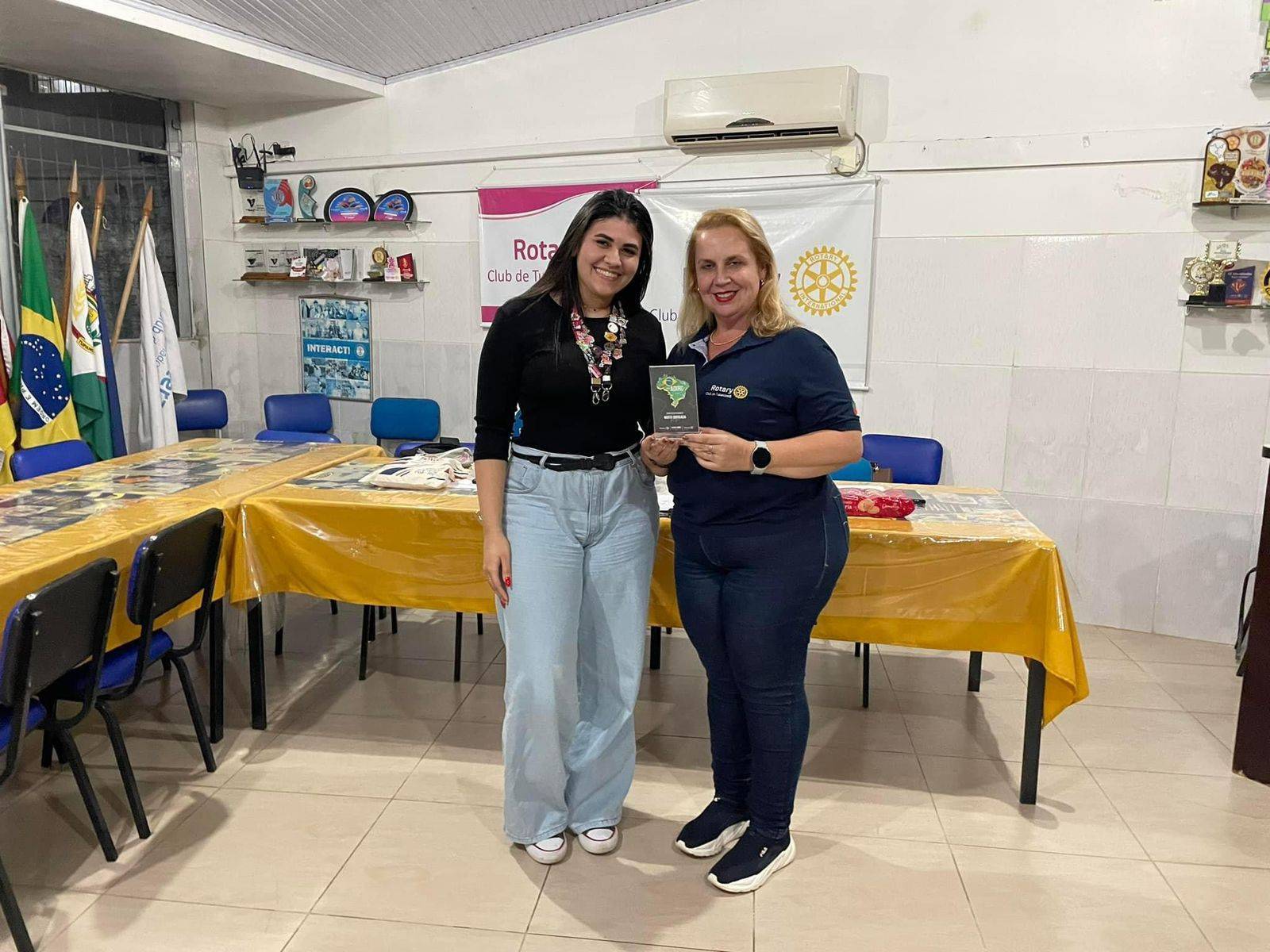Interact Club entrega troféu de agradecimento para a Presidente do RC de Tupanciretã