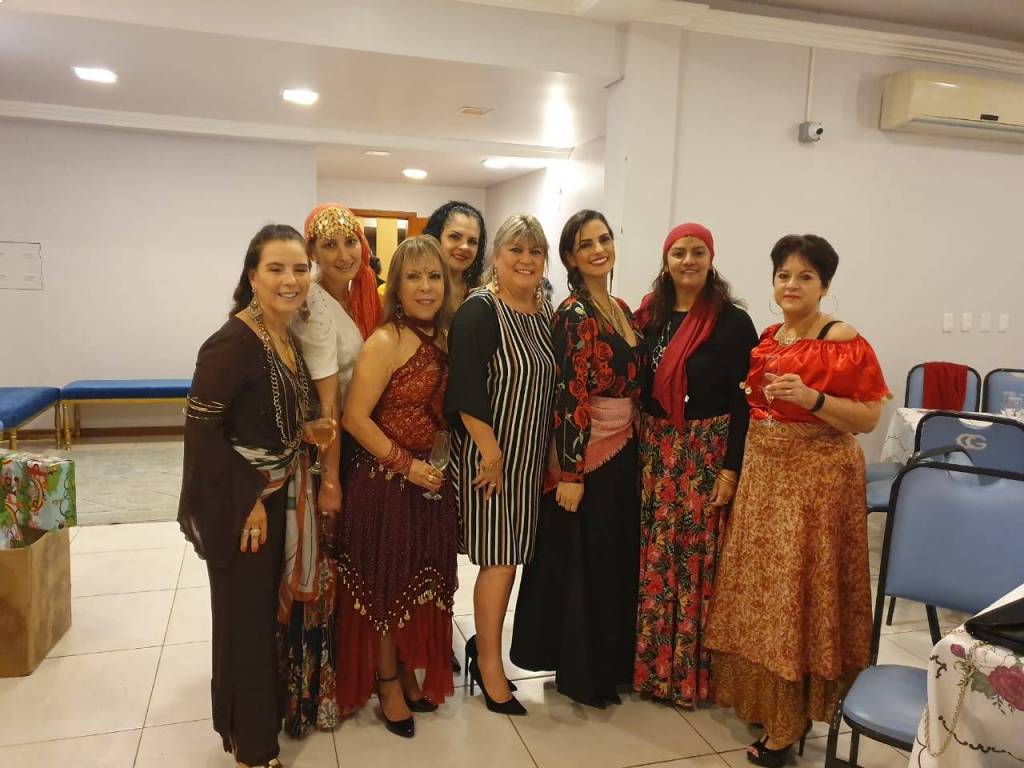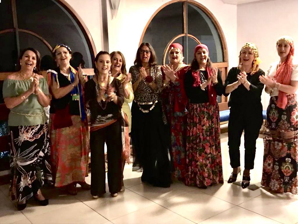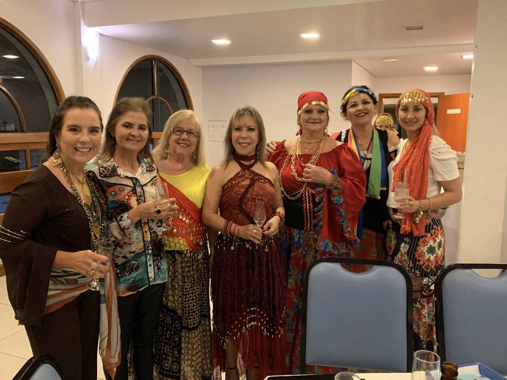 As aniversariantes de Julho/Agosto: Ana Tcatch, Chica Sperling, Cristina Muner, Fátima Bassani, Ione Benvenutti,Lisiane Londero, Maria do Carmo Ferreira, Maria Lucia Brondani, Mirela Sanchez, Rosa Marcondes e Salete Serra, com muita alegria, comemoraram seus aniversários junto às companheiras com uma linda FESTA CIGANA!!!