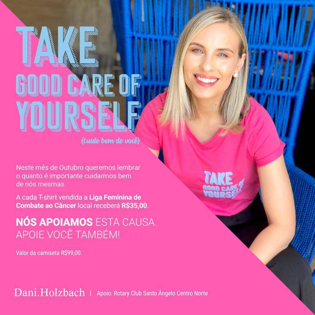 Somos apoiadoras da campanha da marca Dani.Holzbach, que, em cada cidade onde possui sua loja, fará a doação de parte dos valores das camisetas que forem adquiridas, para a liga feminina de combate ao câncer, local.