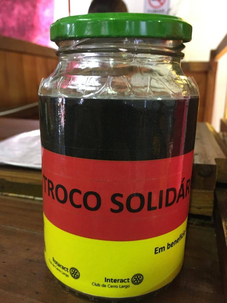 Na última semana, Rotaract, Rotary e Interact estiveram distribuindo em pontos da cidade cofrinhos de “Troco Solidário”. Os valores arrecadados serão doados à Fundação Pólio Plus. Nos locais onde os cofres foram colocados, também foram colados cartazes com informações sobre a pólio e sobre o envolvimento da família rotária na erradicação da doença.