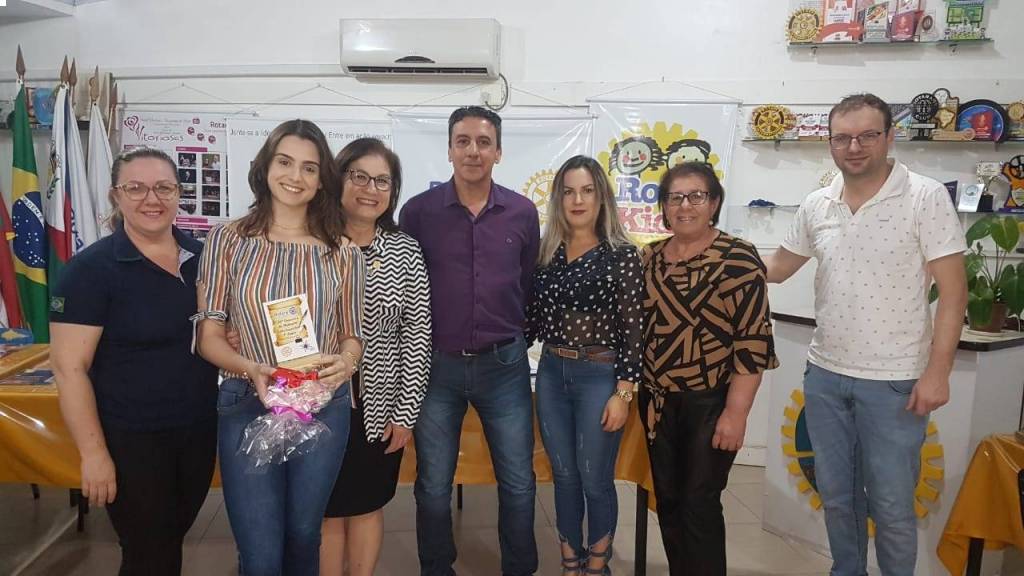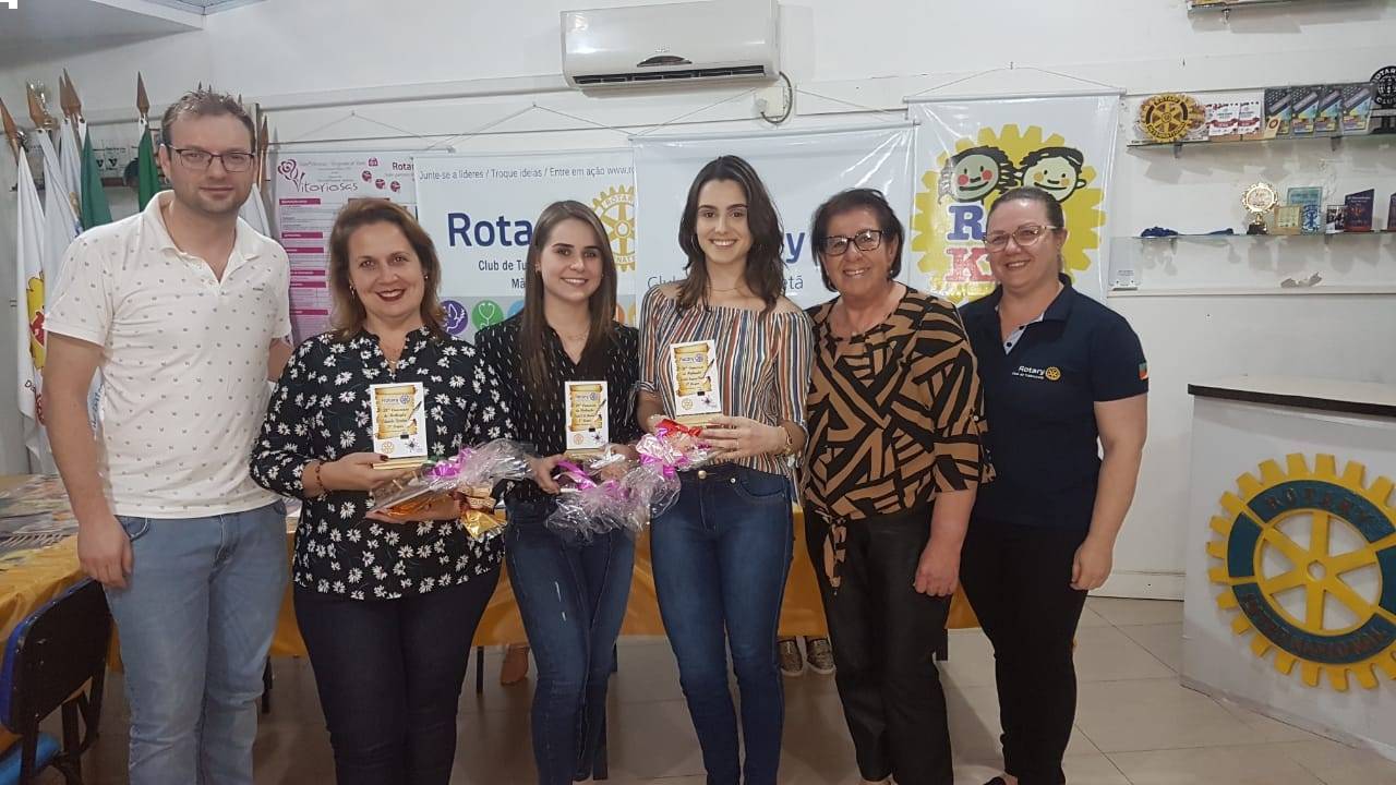 Aconteceu na reunião do dia 09 de outubro a premiação do 20° Concurso de Redação promovido pelo Rotary Club de Tupanciretã na Escola EEM Joaquim Nabuco. Este ano o tema foi: " A influência da música no comportamento dos Jovens". As vencedoras receberam o livro da escritora tupanciretanense Fatima Mardini Frandoloso intitulado " Quem roubou meus sonhos", a qual também se fez presente na reunião e relatou estar muito feliz por sua obra fazer parte da premiação , incentivando jovens a lerem cada vez mais. Estiveram presentes também o Diretor da Escola José Rogério Sales, as professoras Luciane Brum e Ângela Valau. A classificação final foi a seguinte: