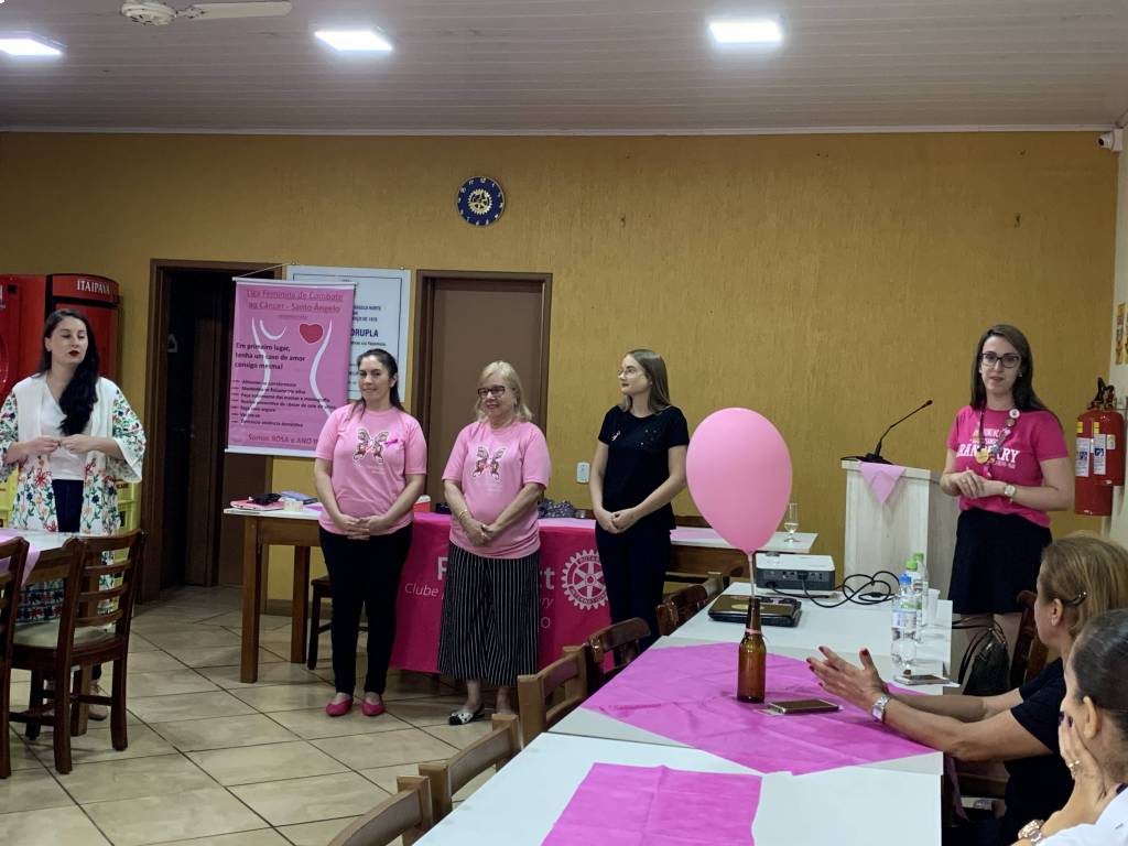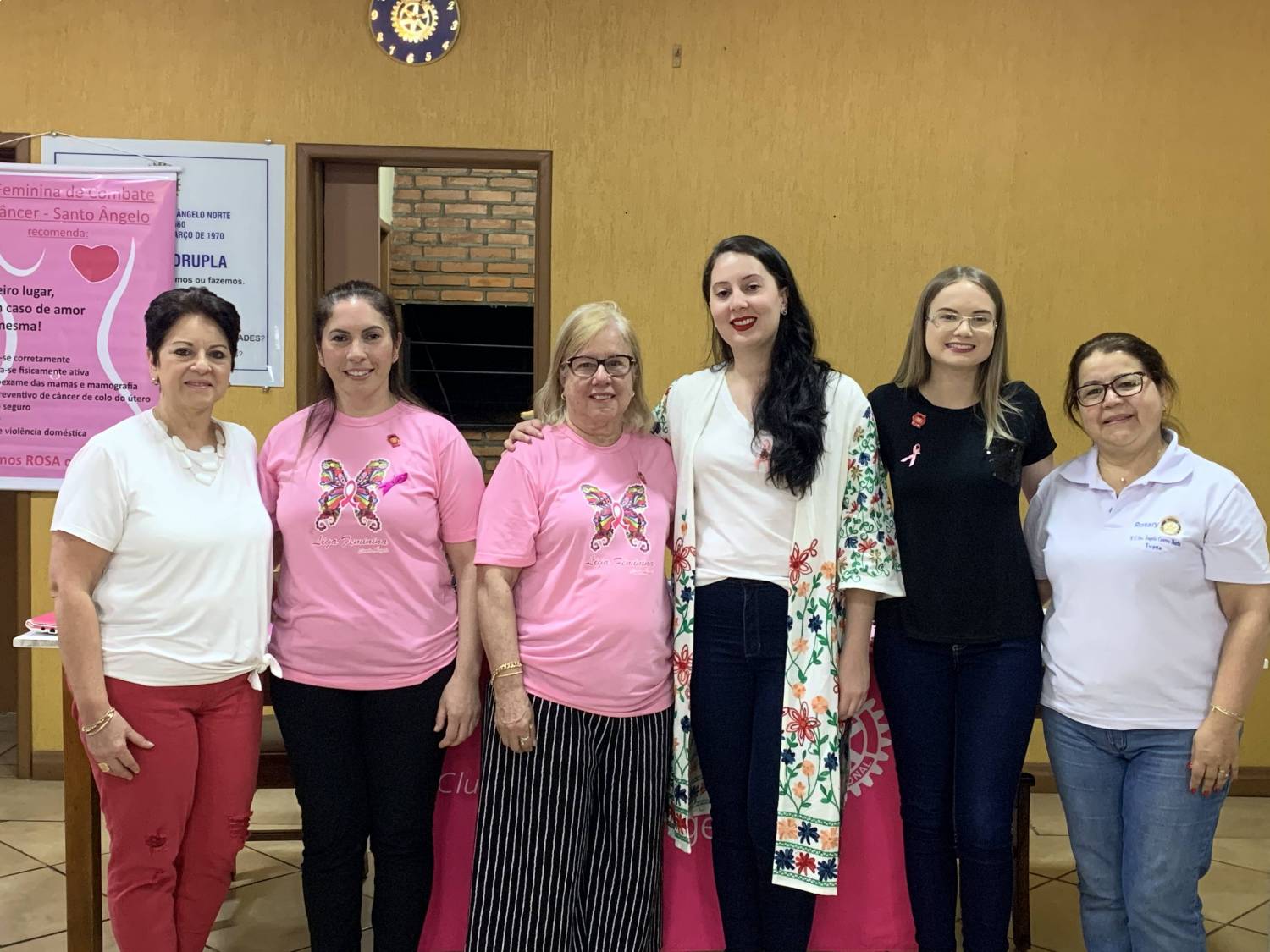 Na tarde de sábado, 26 de outubro, fomos recebidos na Casa do Rotariano , a convite do Rotaract Santo Ângelo, para uma tarde dedicada à saúde da mulher. Ouvimos palestra sobre a "SAÚDE FÍSICA E SAÚDE MENTAL", proferida pela psicóloga Tatiana Hunsper, e também sobre o temido Câncer de Mama e a importância do auto-exame, explanado pela Enfermeira Suzete, parceira e membro da Liga Feminina de Combate ao Câncer. Na ocasião, o ingresso era um 1 Kg de alimento não perecível que foi doado para a Liga.