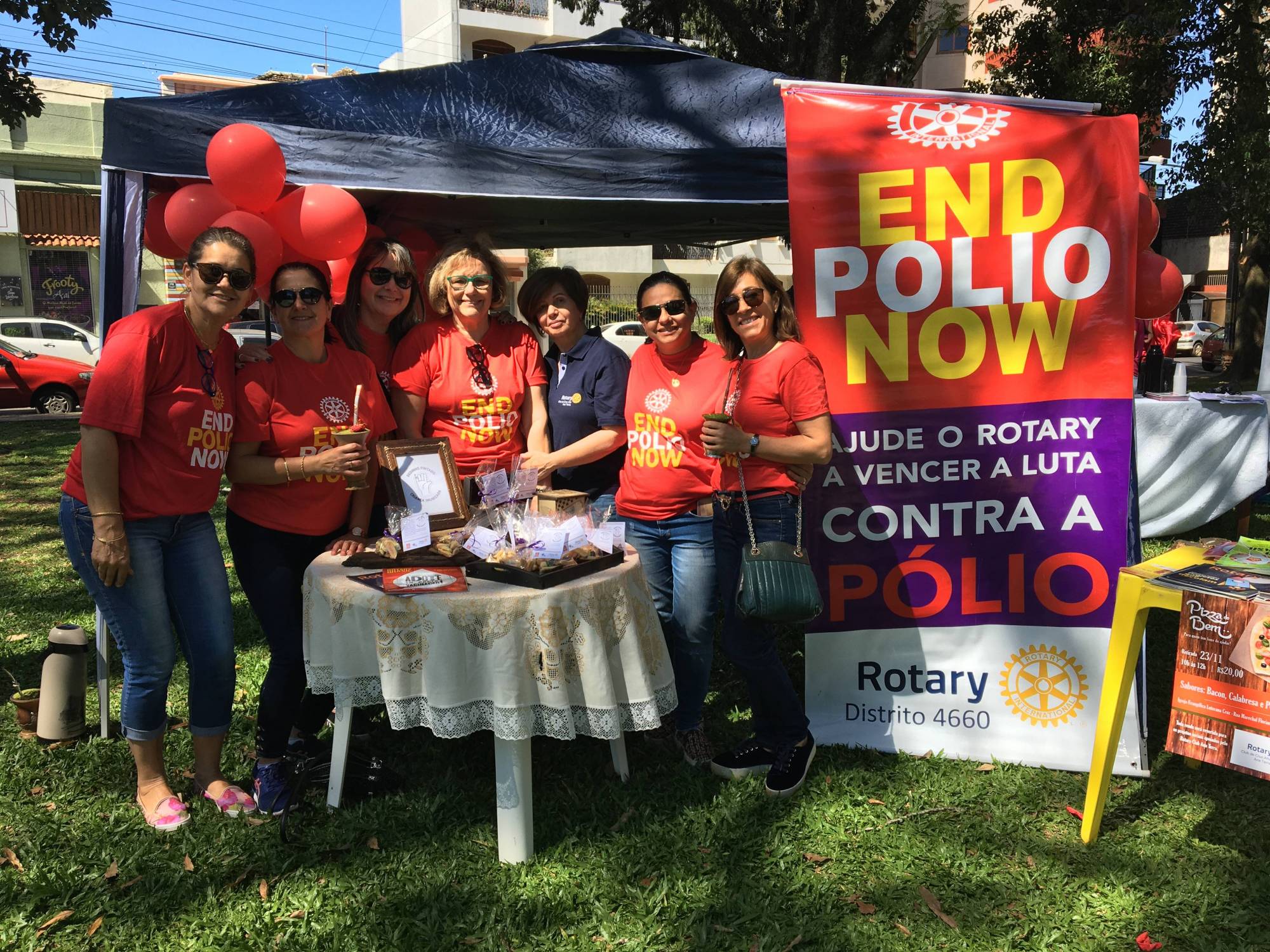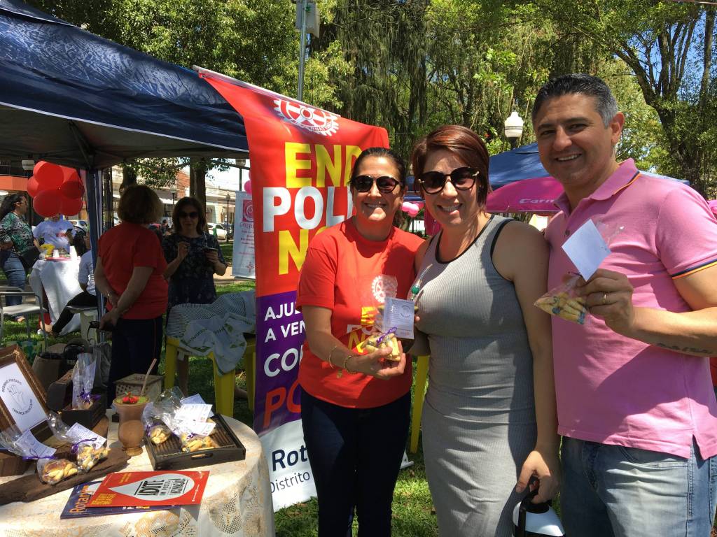 No último sábado, dia 26 de outubro, o RC Ana Terra participou de uma atividade na praça da Matriz de Cruz Alta para divulgar a campanha Dedinho pintado, Criança imunizada, que tem como intuito arrecadar recursos para Fundação Rotária. Na ocasião, foram comercializadas bolachinhas em formato de dedinhos pintados, seguidas de uma explicação sobre a dinâmica de atuação dos agentes de saúde na vacinação contra Pólio, em países endêmicos, ou seja, cada criança vacinada o dedo mindinho é pintado de roxo. A campanha foi um sucesso, pois a comunidade contribuiu com muito entusiasmo e satisfação. As companheiras do RC Ana Terra agradecem a adesão de todos que visitaram nosso espaço e compraram nossa ideia!