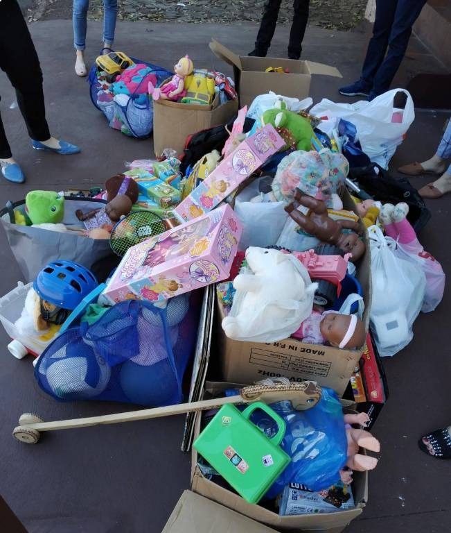 Entrega dos brinquedos arrecadados no Kids Rock Festival, ao Sementes do Bem