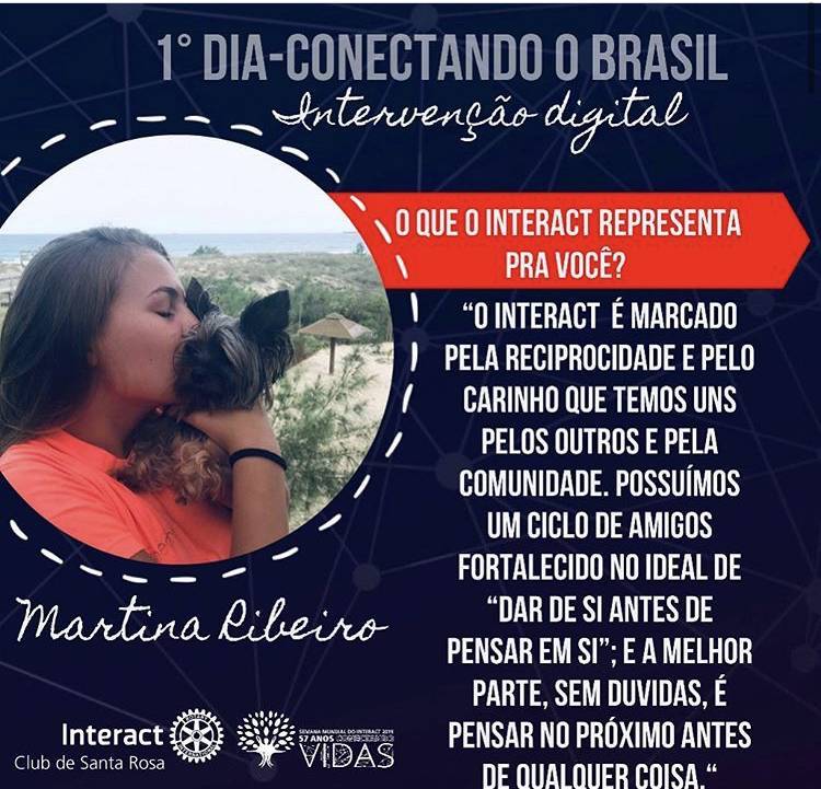 Na intenção de compartilhar o sentimento de ser interactiano (a) e divulgar o programa, convidamos a companheira Martina Ribeiro à responder a seguinte pergunta : O que o Interact representa pra você?