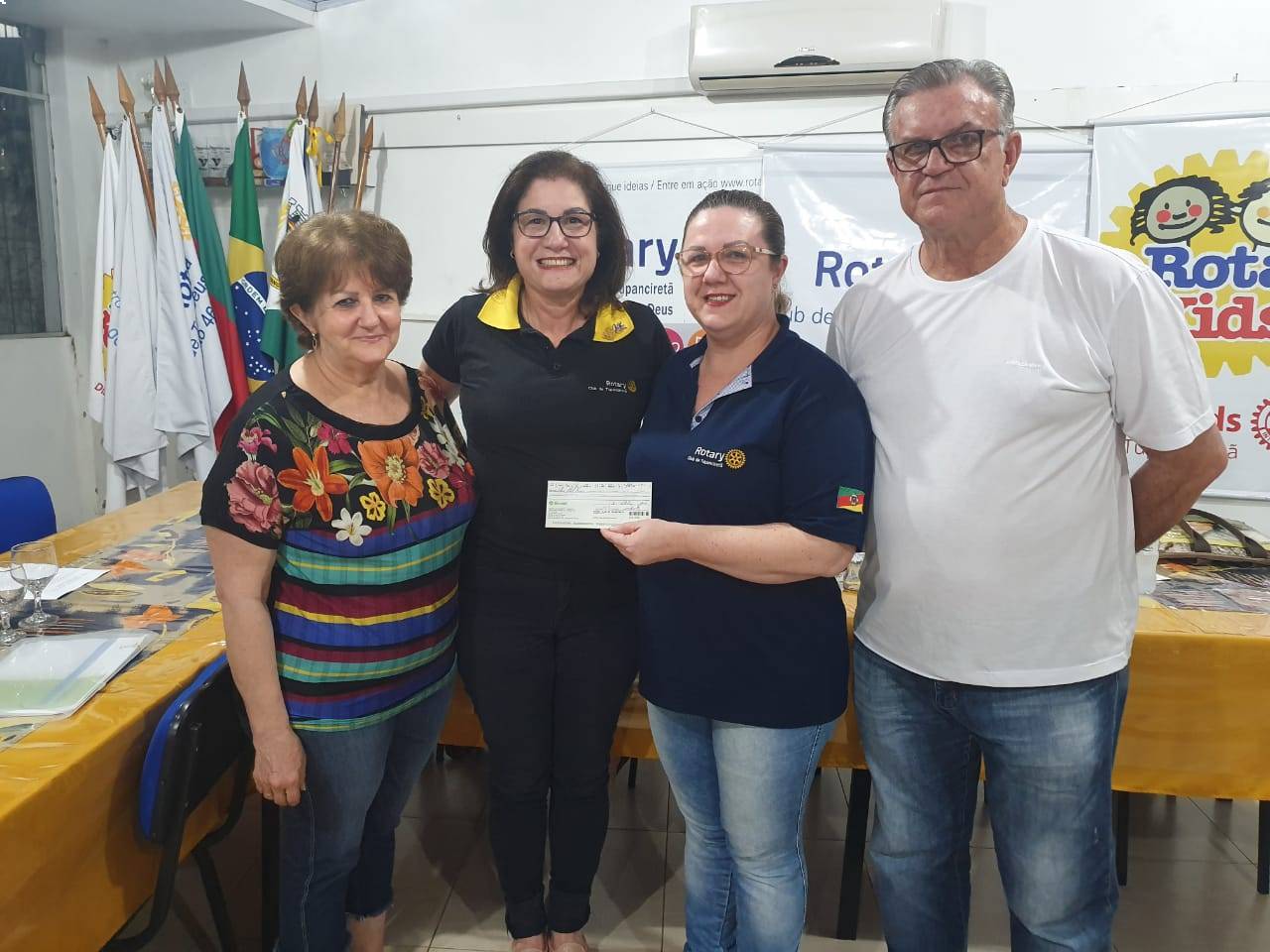 Na reunião do dia 30 de outubro, o Rotary Club de Tupanciretã doou um valor oriundo do lucro do 8° Baile do Chopp para o Projeto TECER E AQUECER. Este projeto foi idealizado em 2016, consiste num grupo de atualmente 26 mulheres, coordenadas pelas Rotarianas Sandra Pich e Lenir Pich, que doam seu tempo e suas habilidades manuais em fazer roupinhas para recém-nascidos, confeccionados em lã nas modaliddaes de crochê e tricô. Os conjuntos de maternidade são distribuídos em hospitais, Associações de Bairros, ONGs de Crianças com Câncer, Pastoral da Criança e da Saúde e também entregas individuais nos bairros carentes da nossa cidade. Já foram doados mais de 250 conjuntos de maternidade.