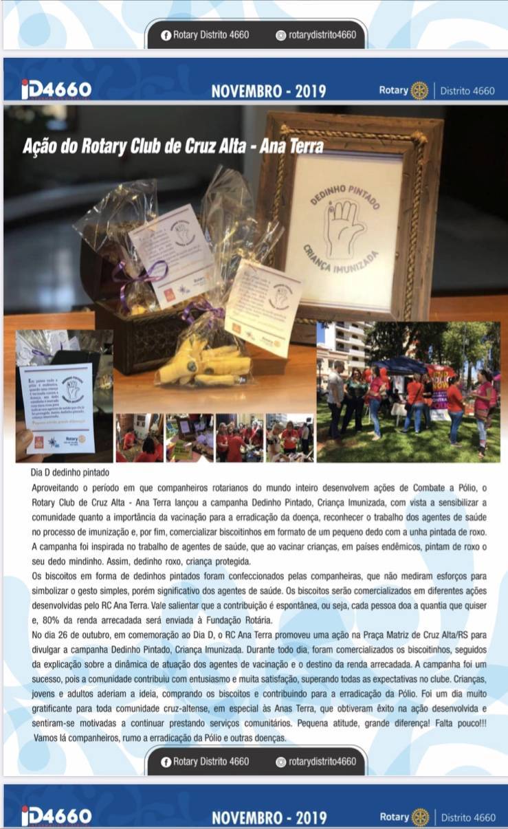 Campanha Dedinho Pintado é destaque no Informativo do Distrito 4660