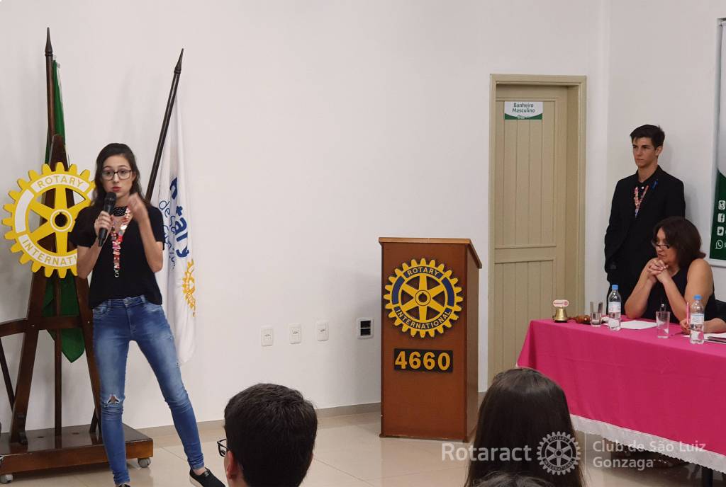 Pela primeira vez, além do Rotaract, o concurso também deu espaço ao Interact Club de São Luiz Gonzaga, recentemente reativado. Devido a contratempos com alguns participantes do Rotaract no final de semana, o clube foi representado apenas pela companheira Amanda Fernandes, que fez uma bela apresentação, digna do primeiro lugar que conquistou. Já os interactianos participaram com três oradores, ficando Bruno Zanchi Machry em terceiro lugar, Ana Clara Bressan Willers em segundo e Kadu Fernandes Flores em primeiro lugar.