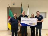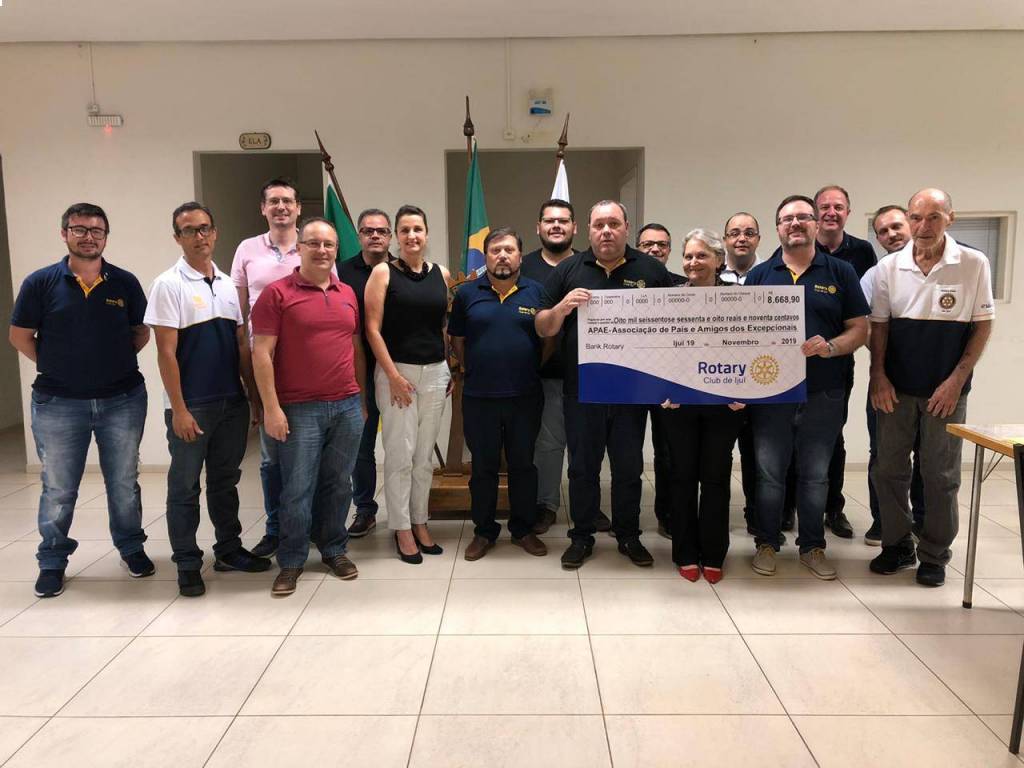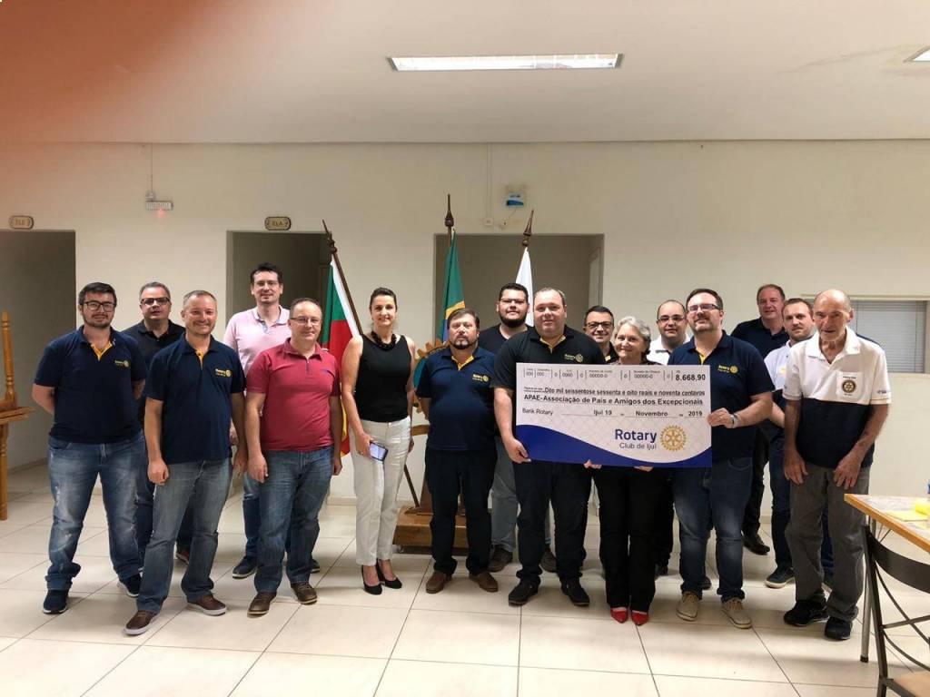 Na última terça-feira (19), nas dependências da sede do Rotary Club de Ijuí, aconteceu a entrega do valor arrecadado no 14° Costelão Beneficente a APAE de Ijuí. Na ocasião estiveram reunidos os companheiros rotarianos do Rotary Club de Ijuí, o governador do distrito 4660 e membro do Rotary Club de Ijuí Roger Roberto, representantes do GF Chaleira Preta, entidade parceira do evento e representantes da APAE. A sra. Avani Zenaide Brizzi Zwanziger, presidente da APAE recebeu das mãos do presidente do Rotary Club de Ijuí, Carlos Basso, do presidente do 14° Coselão Beneficente, Pedro Severnini e do patrão do GF Chaleira Preta, Silvio Manggini, o cheque simbólico na importância de R$ 8.668,90. A sra. Avani agradeceu a dedicação dos companheiros rotarianos bem como a patronagem do GF Chaleira Preta em prol da APAE e da comunidade em geral. Disse que o valor veio em boa hora, uma vez que a APAE passa por constantes reformas para melhor atender aos seus alunos e esse valor contribuirá para a reforma de um dos banheiros. O governador Roger lembrou que o Rotary Club de Ijuí já é parceiro da APAE de Ijuí desde a sua fundação, tendo doado inclusive o terreno onde hoje é sua sede. A patronagem do GF Chaleira Preta agradeceu ao convite do Rotary Club de Ijuí para ser parceiro em mais esse evento, como a exemplo do ano anterior, e pela oportunidade da entidade poder colaborar com as boas ações do Rotary e benefício da comunidade. O presidente do 14° Costelão Beneficente agradeceu ao apoio da patronagem do GF Chaleira Preta e dos companheiros rotarianos na organização do evento, o qual avaliou como impecável, e ao apoio da APAE na comercialização dos cartões. Por fim o presidente do Rotary Club de Ijuí, Carlos Basso, da mesma forma agradeceu ao apoio de todos os envolvidos.