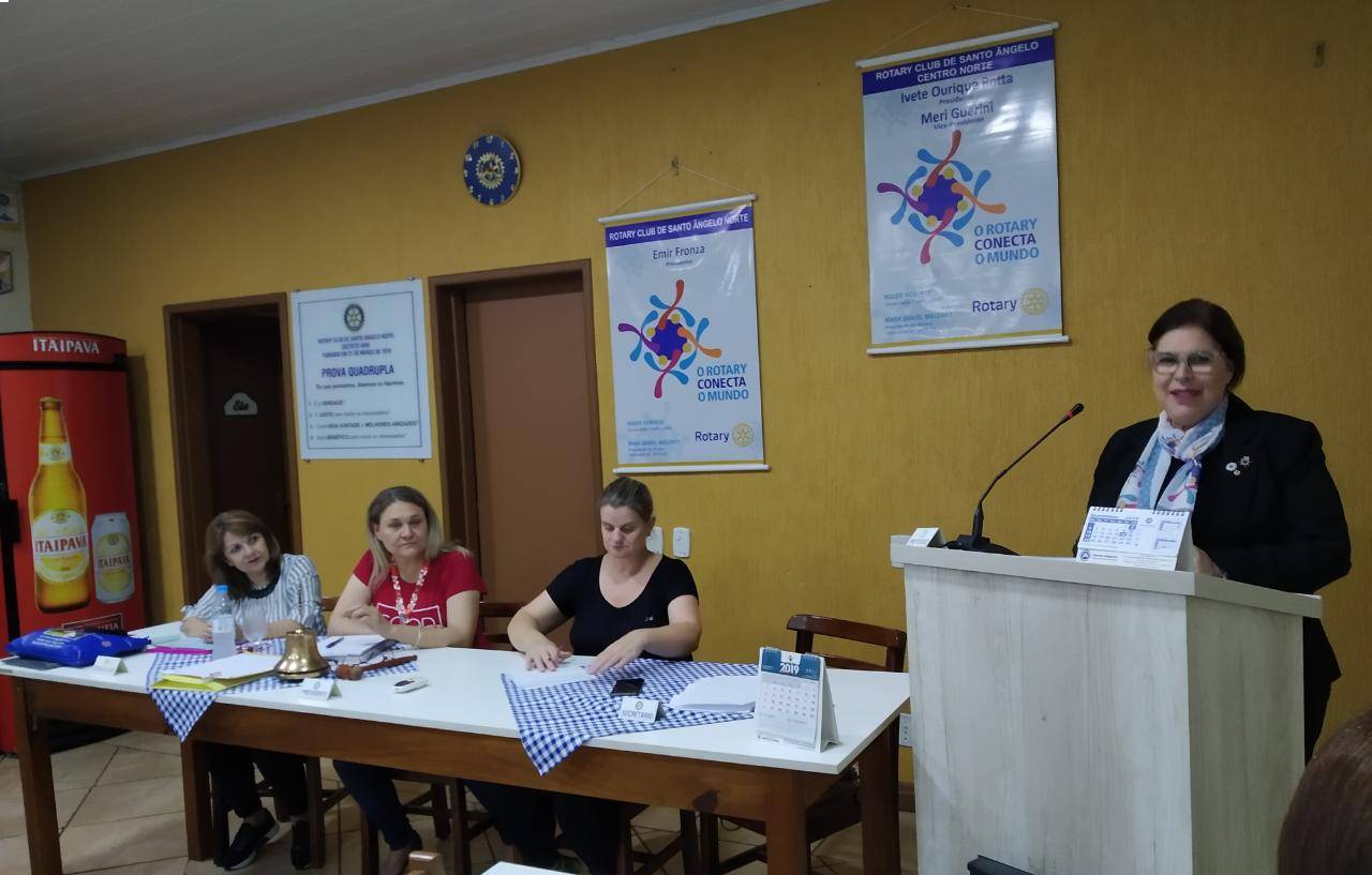 Em pauta à visitantes da família Rotária, Rita falou um pouco da atuação de seu clube, no Estado onde reside, bem como sua participação junto ao Rotaract Club de lá.