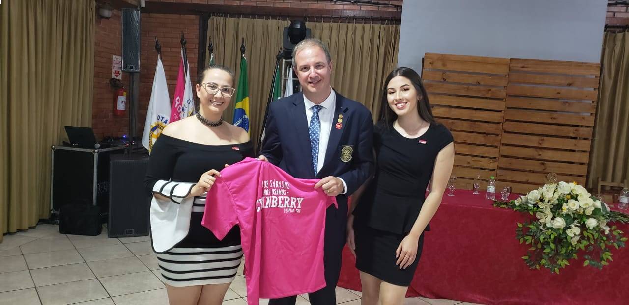 Na oportunidade ainda, nossa vice presidente do Rotaract, companheira Letícia, juntamente com a companheira Gabriela, entregaram uma camiseta do clube ao governador como forma de agradecimento pela visita.