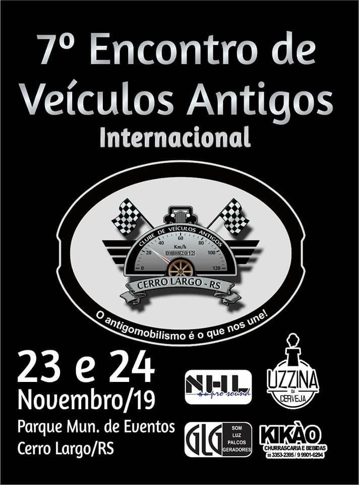 O Rotary Club de Cerro Largo participará do 7° Encontro Internacional De Veículos Antigos, organizado pelo Clube De Veículos Antigos De Cerro Largo, nos dias 23 e 24 de novembro, no Parque Municipal de Exposições.