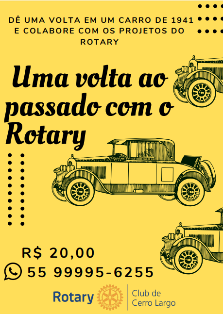Durante o 7° Encontro Internacional De Veículos Antigos, organizado pelo Clube De Veículos Antigos De Cerro Largo, nos dias 23 e 24 de novembro, no Parque Municipal de Exposições, o Rotary Club de Cerro Largo promoverá a campanha Uma volta ao passado com o Rotary, onde os visitantes do encontro poderão dar uma volta num carro de 1941 e contribuir com os projetos do clube.