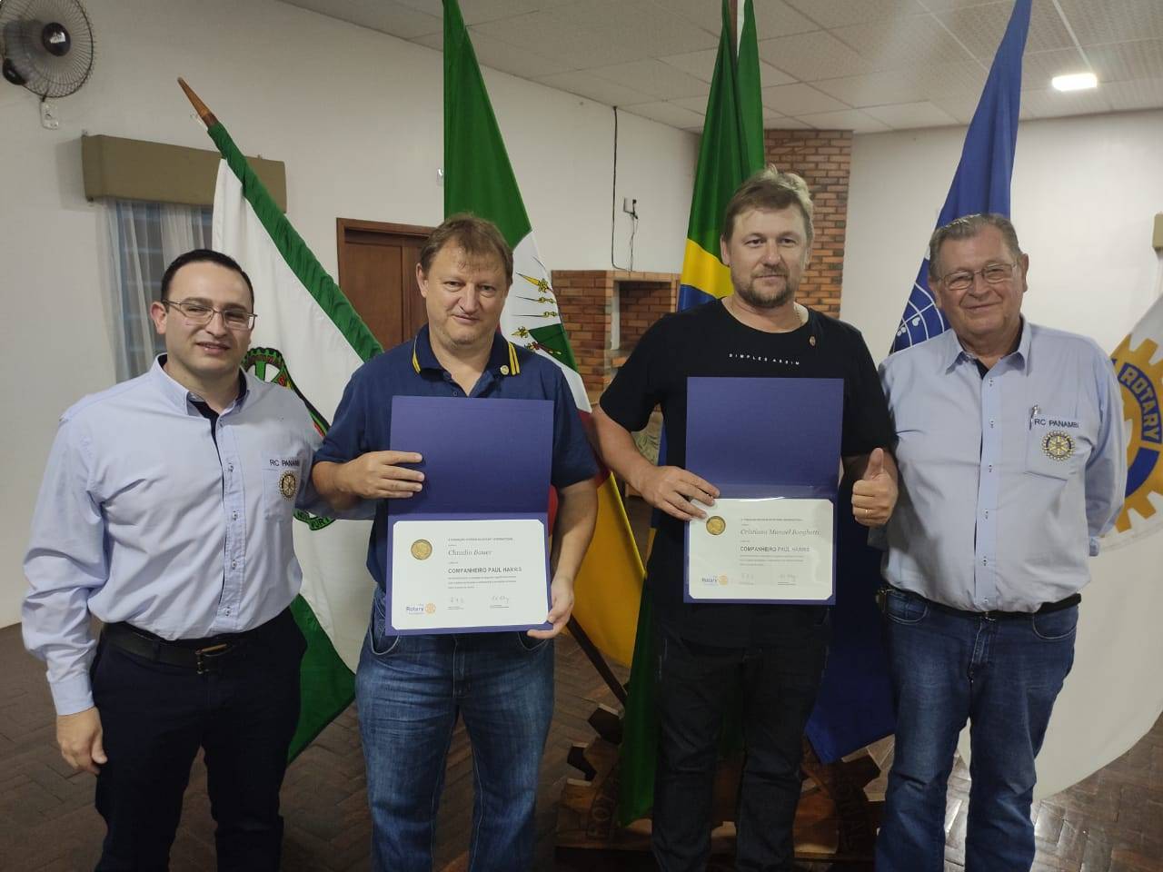 Foram homenageados e agraciados com o Título Paul Harris Fallow, por serviços prestados os companheiros do Rotary Club de Panambi, Cristiano Manoel Borghetti e Cláudio Bauer.