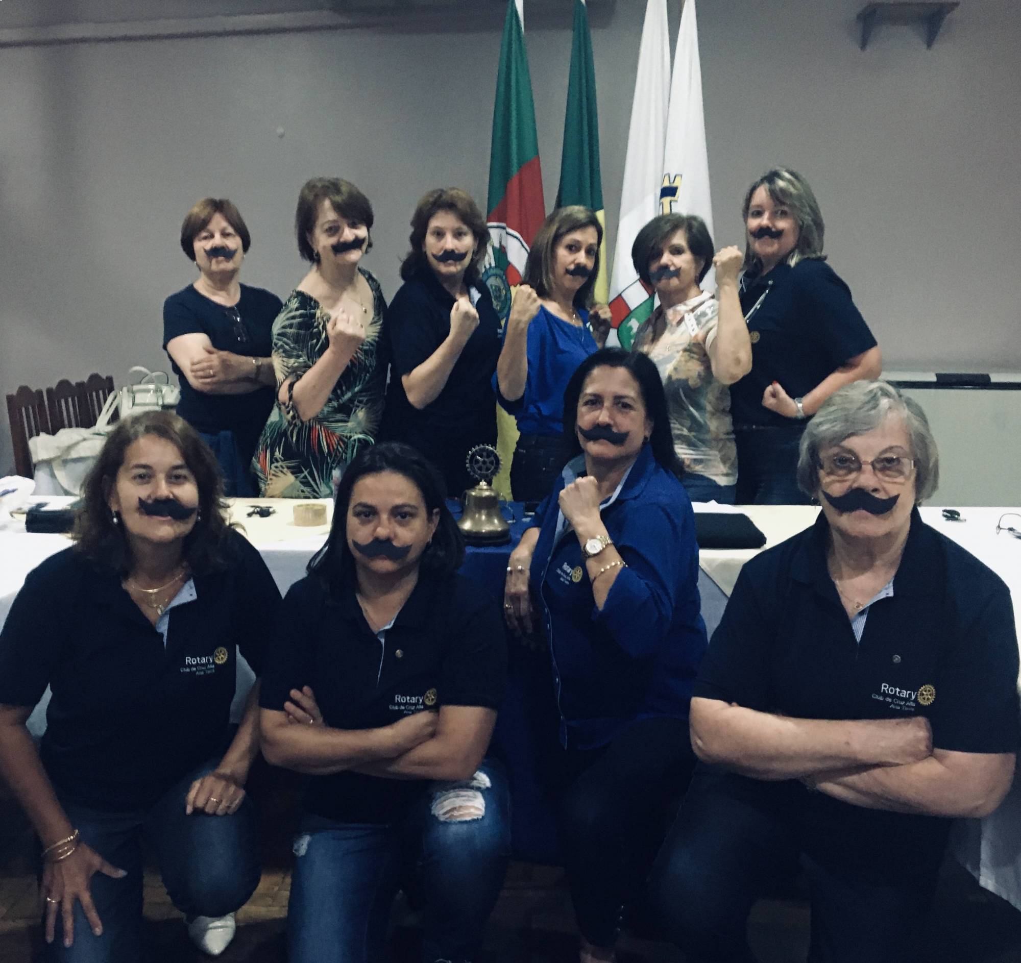 Aproveitando a última semana do mês de novembro, as companheiras do RC Ana Terra, na reunião desta terça-feira (26), abriram espaço para reflexão sobre a importância da campanha Novembro Azul. O movimento surgiu na Áustria, em 2003, onde um grupo de amigos teve a ideia de deixar o bigode crescer com objetivo de chamar a atenção para a saúde masculina. Por isso, o bigode é símbolo da campanha no mundo todo! Ciente disso, as rotarianas vestiram-se de azul e colocaram bigode para simbolizar a importância da prevenção e do diagnóstico precoce do câncer de próstata, já que no Brasil é o segundo mais comum entre os homens. Homens, sejam fortes!!! Cuidem-se!!!