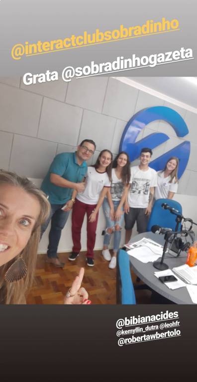 Na manhã de terça-feira,26, o Interact juntamente com o Rotary, foi ao Grupo Gazeta de Comunicação, Gazeta FM, divulgar as ações do clube e convidar para o 1° Galeto do Interact, o evento será no domingo, a partir das 11:30, na Loja Maçônica Àcacia da Serra, Pousada da Serra. A ficha custa$15,00, 3 galetos, maionese de batata, arroz e salada verde. Levar um vasilhame. O lucro será revertido para a compra de brinquedos para crianças carentes e uma porcentagem para as ações do clube. O Interact é um clube recem formado e mensalmente realiza uma ou duas ações por mês desde a sua fundação.