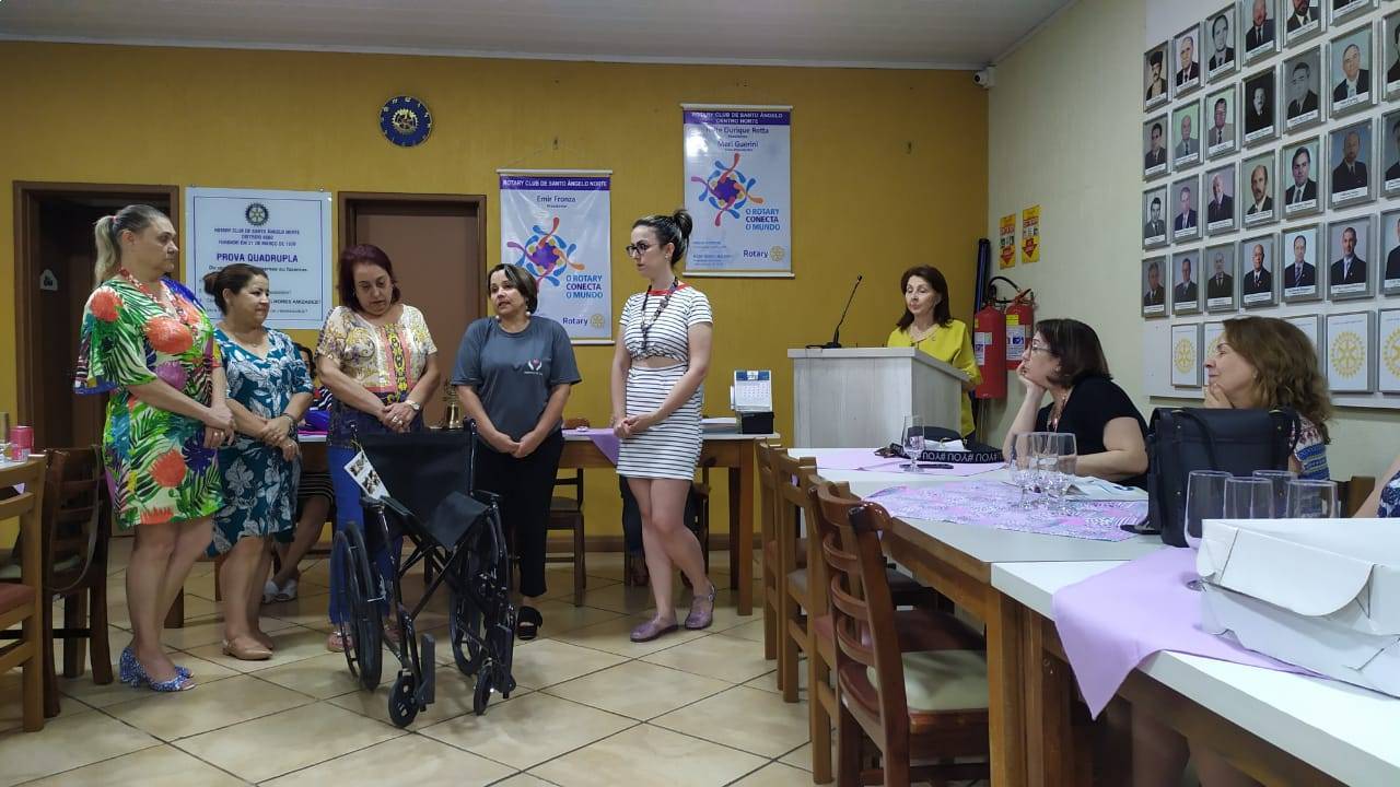 Na oportunidade, através de contato feito anteriormente, recebemos ela em nossa sede, para, fazermos a entrega da cadeira de rodas, ao uso do Jair.