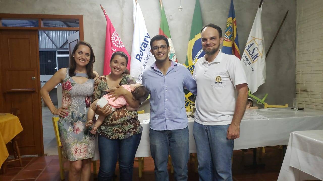 Na noite do dia 25 de novembro durante a reunião festiva de final de ano, o companheiro Bruno Batista Teixeira foi empossado como membro do Rotary Club de Cerro Largo. Bruno é natural de Ilha Solteira - SP, e está em Cerro Largo à trabalho, Bruno já se mostrou bastante proativo e auxiliou o clube durante toda Ocktober.