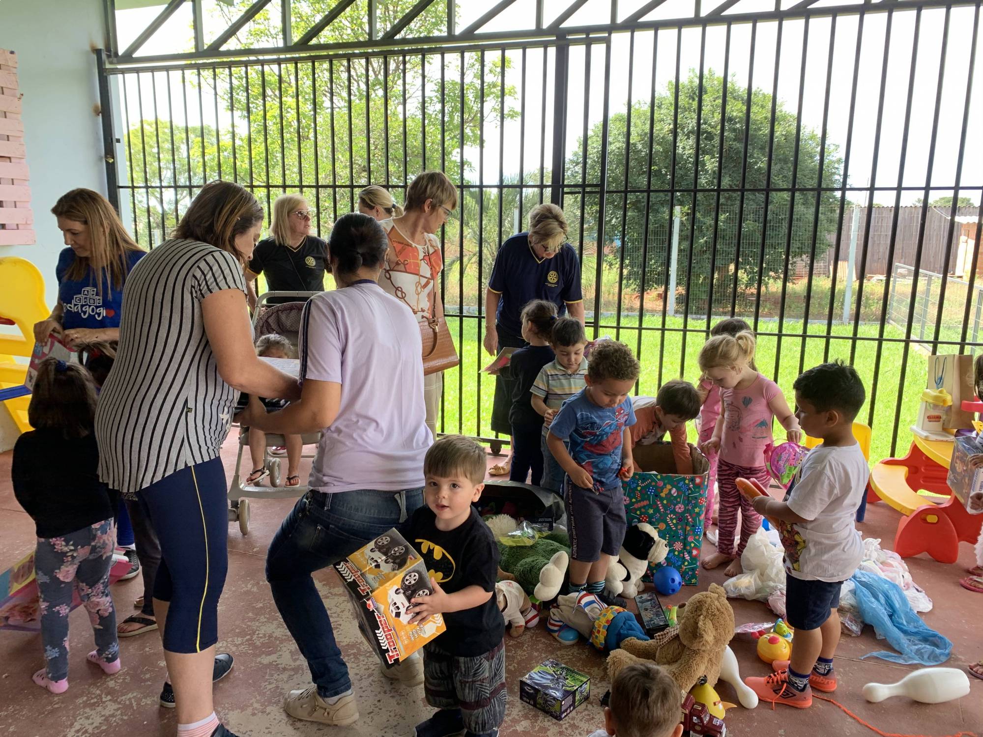 EMEI WILSON GONÇALVES RAMOS, no bairro Indubras, ao receberem os brinquedos arrecadados entre as companheiras deste Rotary. Agradecemos a professora e diretora Adriele por nos ter recebido.