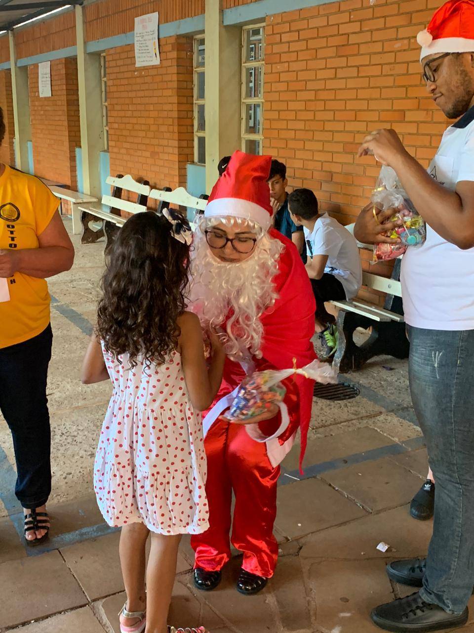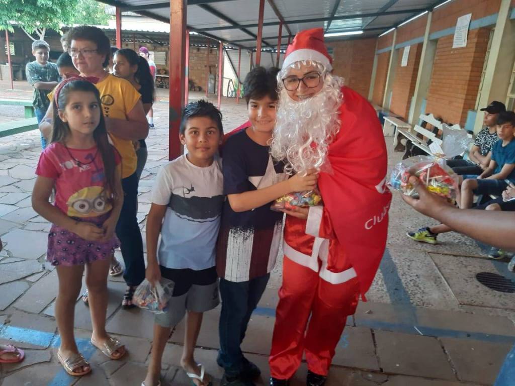 Todos os doces foram contados e separados em pacotinhos e, no dia 12 de dezembro, foram entregues a mais de 120 crianças da zona periférica de Cerro Largo. Para animar a entrega e contribuir com a magia do natal, um dos membros do clube foi vestido de Papai Noel. Entre doces e abraços, rotaractianos desejaram Feliz Natal aos alunos e à comunidade escola presente. Para encerrar as atividades o Diretor agradeceu ao clube e enalteceu o trabalho voluntário realizado, demonstrando gratidão e enorme carinho para conosco.