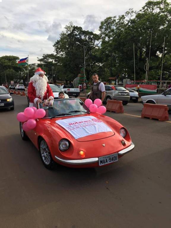 Após a pedalada, nós levamos o papai Noel até o campo do bairro Marcial Terra, onde ele também distribuiu doces, cachorro quente e refrigerante.