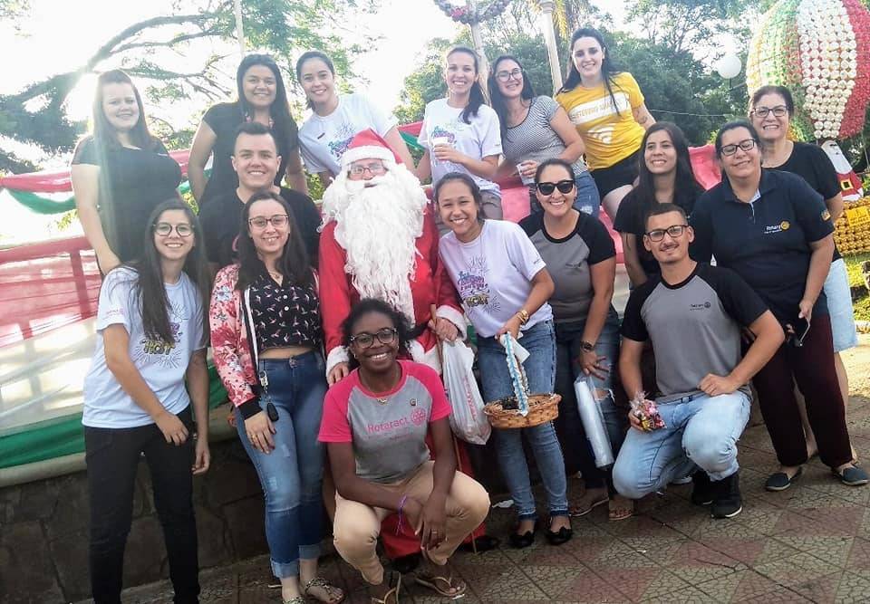 Quando retornamos para a praça, distribuímos a todas as crianças, doces, cachorro quente e refrigerante. Também realizamos o sorteio de chocolates, doados pela Cacau Show.