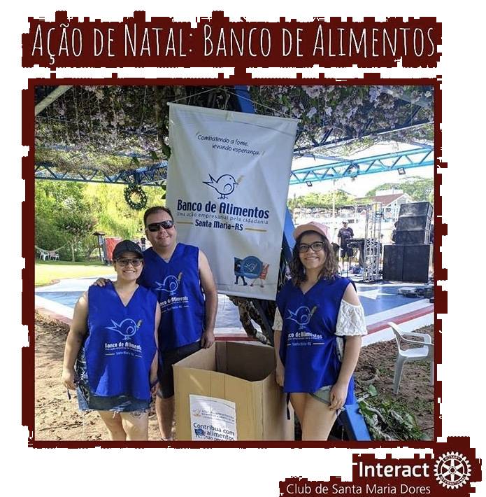 No dia 25 de dezembro, O Interact Club de Santa Maria Dores marcou presença no Natal Show do Club Recreativo Dores onde,juntamente com o Banco de Alimentos de Santa Maria, arrecadou alimentos não perecíveis para contribuir com a campanha Santa Maria Sem Fome. Agradecemos as sócias que se disponibilizaram a participar e ao convite do Banco de Alimentos pelo convite