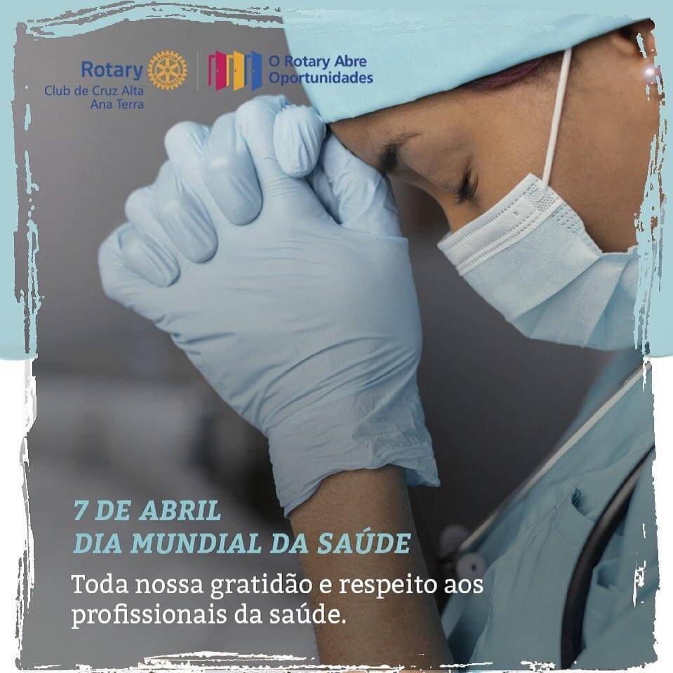 No Dia Mundial da Saúde - uma das áreas de enfoque do Rotary International, o parabéns vai para todos os profissionais da saúde que estão no combate à pandemia do Covid-19.