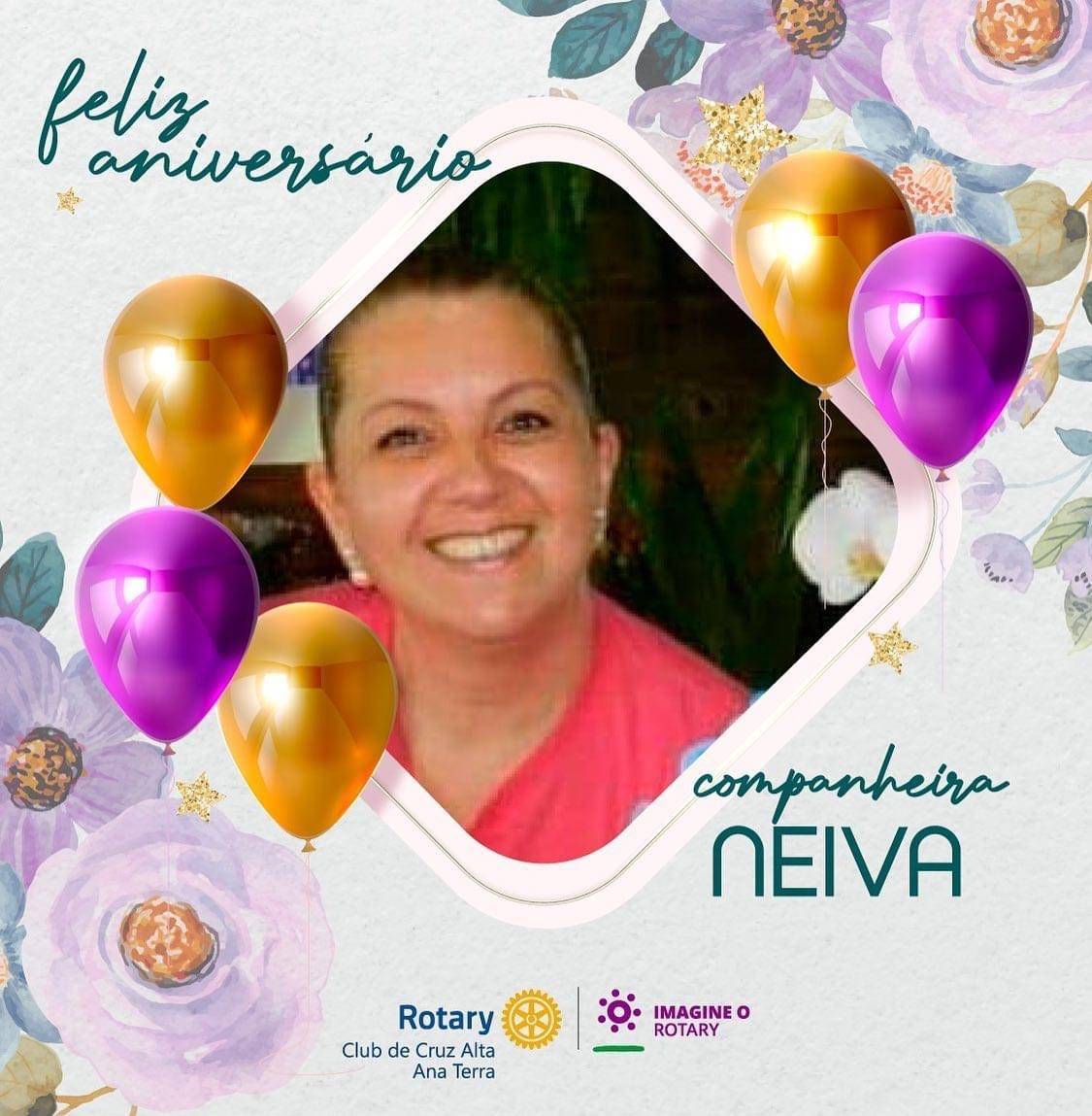 Querida companheira Neiva, que tudo que há de bom em ti seja triplicado e volte em forma de bençãos! Feliz Aniversário! Um carinhoso abraço das companheiras rotarianas 🥳👏🏼🥳