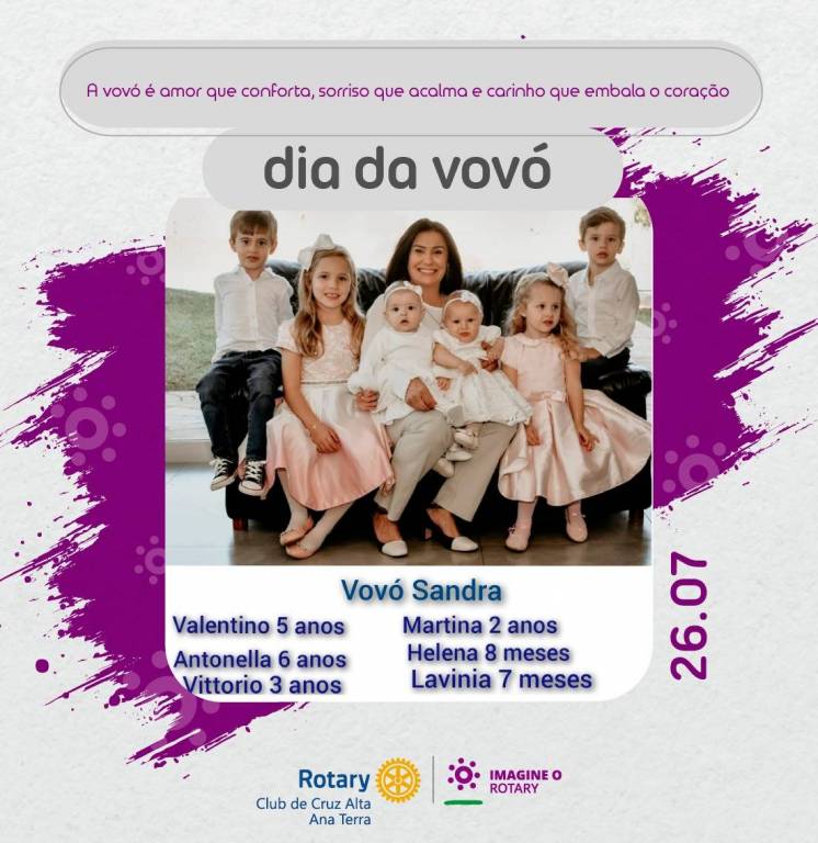 Nesse dia das vovós, o RC Ana Terra deseja que Deus abençoe, ilumine, proteja e conceba muita saúde para seus lindos netos e netas. Parabéns vovós