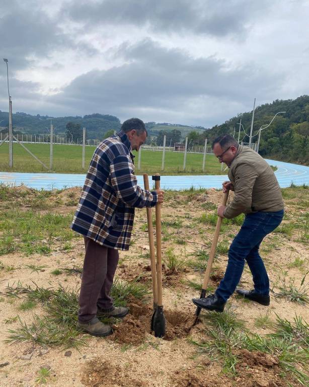 Hoje é o dia da árvore e com o objetivo de incentivar a proteção as florestas e lembrar a importância das árvores, o Rotary em parceria com a Secretaria Municipal de Indústria e Comércio iniciou o plantio da primeira árvore na praça que esta sendo construída no Parque da Fejão.