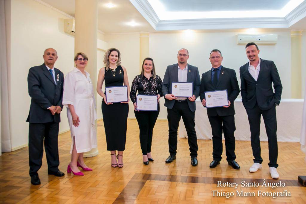 Entrega de Títulos Paul Harris para as companheiras do RC de Santo Ângelo Cruz de Lorena, Daniele Marasca e Mariana Tonetto e para os companheiros do RC de Santo Ângelo Gustavo Barros da Silva Santos e Márcio Antônio Fucilini.