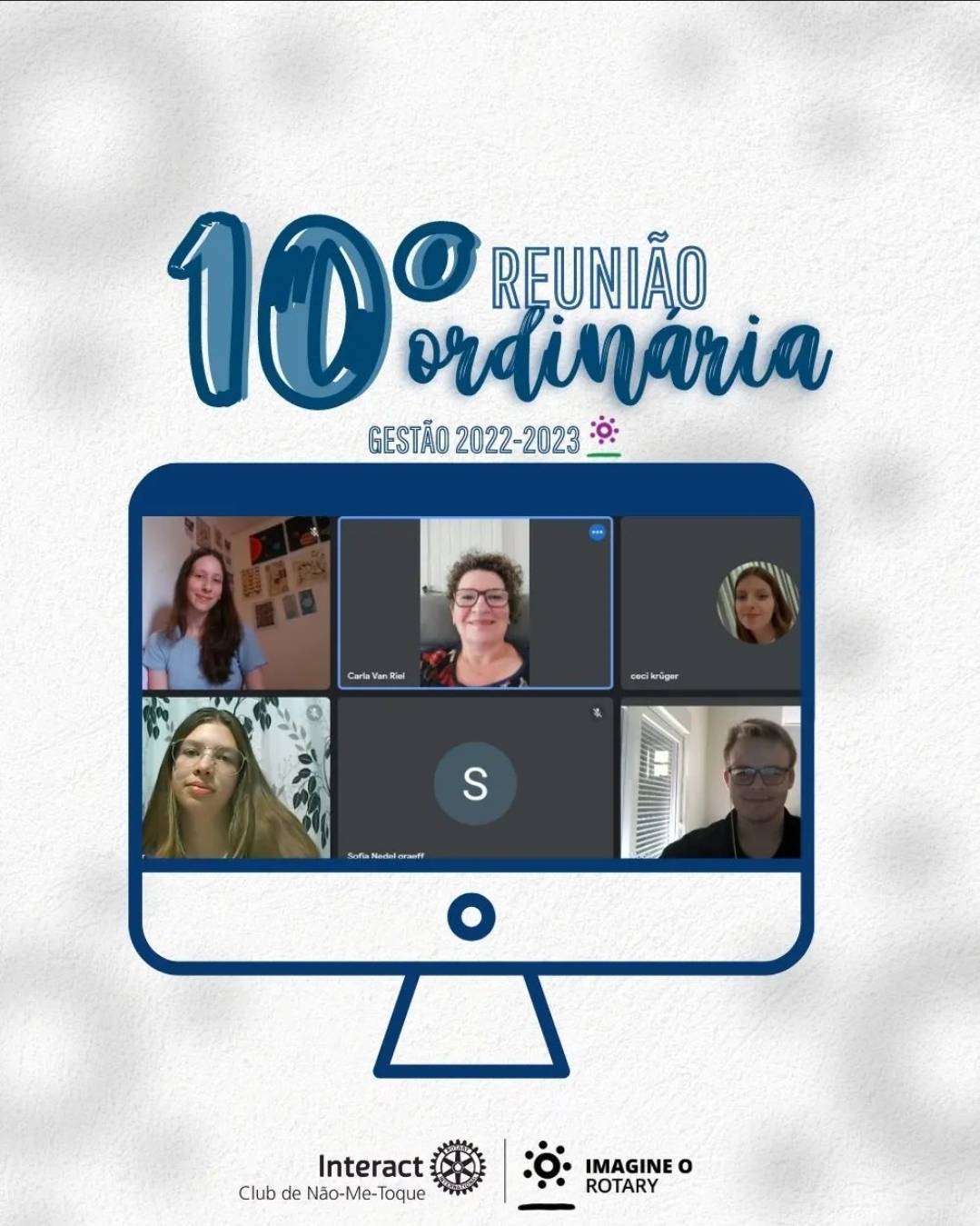 Na tarde de sábado do dia 12/11/2022, foi realizada a décima reunião ordinária do Interact Club de Não-Me-Toque. Na reunião estiveram presentes os associados do clube, contando também com a Rotariana Carla Van Riel. Durante a reunião foi falado sobre nosso dia do convidado e também futuros projetos.