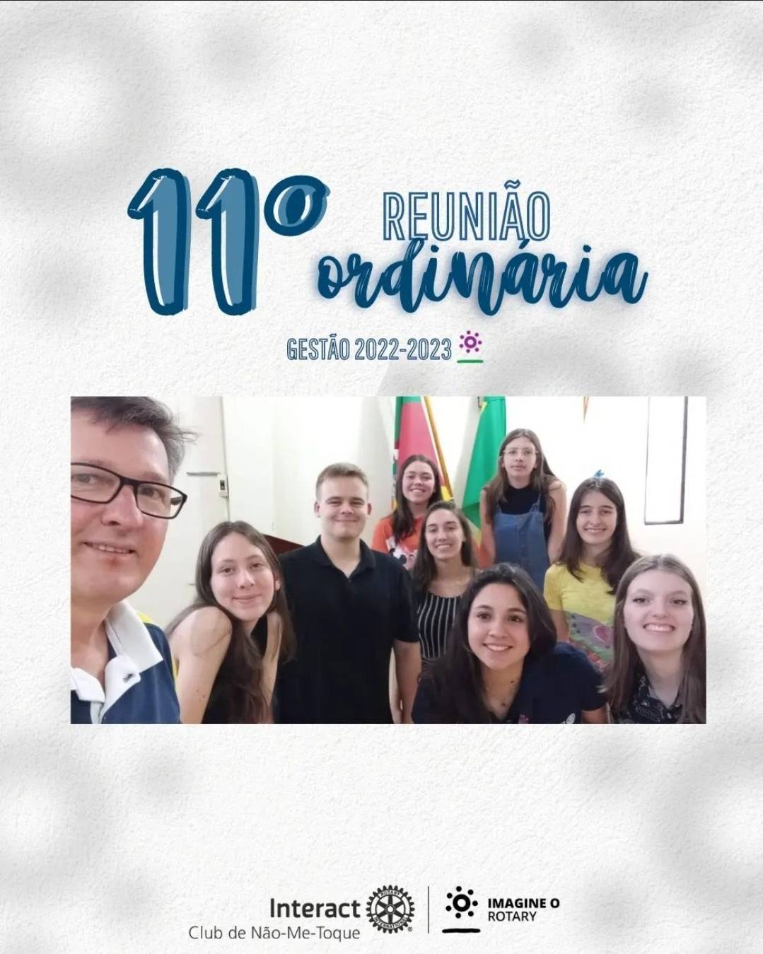 Na tarde de sábado do dia 19/11/2022, foi realizada a décima primeira reunião ordinária do Interact Club de Não-Me-Toque. Na reunião estiveram presentes os associados do clube, contando também com a presença do rotariano Cláudio Trentin. Durante a reunião foi falado sobre nosso dia do convidado e também futuros projetos a serem realizados.