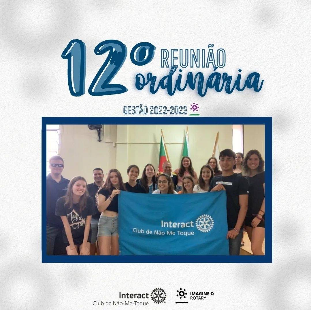 Na tarde de sábado do dia 03/12/2022, foi realizada a décima segunda reunião ordinária do Interact Club de Não-Me-Toque. Na reunião estiveram presentes os associados do clube, contando também com a presença do rotariano Ricardo Pessatto. Durante a reunião foi falado sobre os cargos para nova diretoria e sobre nosso projeto de Natal.