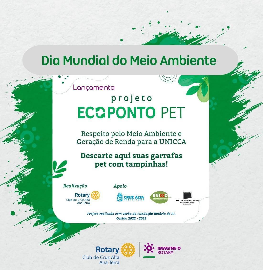 Aproveitando o Dia e o tema estabelecido pela ONU, o RC Ana Terra lança hoje o projeto “Ecoponto Pet”, que visa dar o destino correto às garrafas pet.
