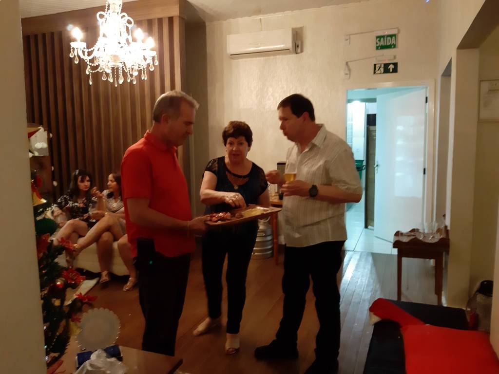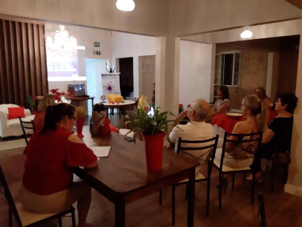 No dia 17, na famosa "Casa da Vó", aconteceu a Festiva de encerramento de ano do Rotary Club de Sobradinho. Para não perder o costume, teve pipoca doce e salgada, chimarrão, "Momento Rotário" e breve lembretes. A presidente Glória Janini De Pellegrin apresentou uma mensagem reflexiva "O natal não falha", e desejou um maravilhoso 2020, concluindo que 2019 foi um ano de sucesso nas ações voluntárias e nos eventos realizados, o qual se resume em gratidão! Foi compartilhado uma pequena lembrancinha para os rotarianos e familiares. Logo realizou-se o amigo secreto, com momentos de alegria e descontração. O jantar delicioso foi a cargo do seu Odelon, saladas, arroz e sobremesas deliciosas, das companheiras Liselota Muller e Maria Ines De Francesque Piccinin. A decoração, linda, em clima natalino e com muitas luzes, foi a nossa companheira e proprietária da Casa da Vó, Marlene Herath. Também teve apresentação de um novo rotariano, João, pela companheira Simone Fardin. A festiva foi de intenso companheirismo. Feliz 2020 a todos nós, finalizou a presidente Glorinha.