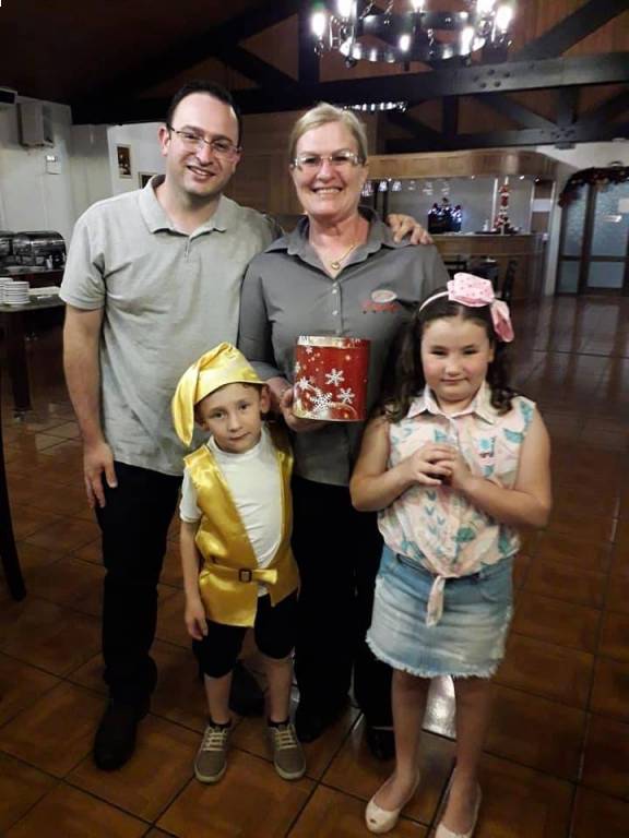 no dia 17.12 o Presidente do Rotary Club de Panambi, juntamente com seus filhos, companheiros Kids, Mariana e João Pedro, fizeram a distribuição de Panetones do Bem ao Pessoal que sempre nos atende e está junto dos companheiros em nossas reuniões. Feliz Natal e Abençoado Ano Novo.