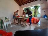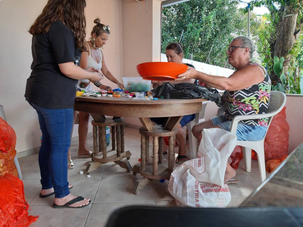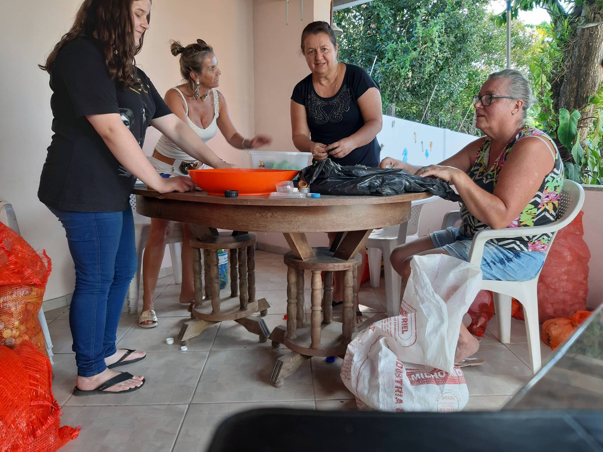 Na calorosa tarde se segunda-feira, na residência da rotariana Liselota Muller, a Loti, reuniram as companheiras Glorinha Pellegrin, Fatima Cledir Moreira, Marcia Bulegon e a Interactiana Tainá de Francesque para separar e limpar as tampinhas.