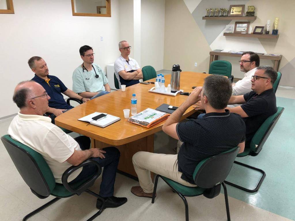 Estiveram reunidos na última terça feira, 18, no Hospital de Caridade de Ijuí, o Rotary Club de Ijuí, representado pelo seu presidente Carlos Eduardo Basso, o presidente e os demais membros da comissão organizadora do 51° Baile do Chopp Luciano Furti, Marcio Schwanke, Fábio Schwanke e Rodrigo da Silva, e a diretoria do HCI representada pelo presidente em exercício Cícero Tremea dos Santos, o diretor executivo Genésio Gomes e o gerente administrativo de serviços Rui Protti. Na ocasião o presidente Cícero relatou das dificuldades financeiras enfrentadas no dia a dia para manter os serviços prestados pelo hospital e aproveitou para agradecer a parceria de tantos anos do Rotary Club de Ijuí com o hospital, o que vem possibilitando a aquisição de inúmeros equipamentos para atender a comunidade regional, sendo o último, um Monitor Desfibrilador Bifásico, no valor de R$ 17.000,00 fruto do 50° baile do Chopp. O presidente do 51° Baile do Chopp, Luciano Furti aproveitou a ocasião para anunciar que o lucro do próximo baile, que acontece no dia 18 de abril de 2020, será novamente em benefício ao Instituto do Coração. O baile terá novamente a animação da banda Indústria Musical, que tem feito sucesso nos últimos bailes do Rotary e foi muito elogiada pelos patrocinadores. Mais informações a respeito de patrocínios e compra de ingressos podem ser obtidos junto à comissão organizadora ou pelo fone 99934-5590 com Luciano.