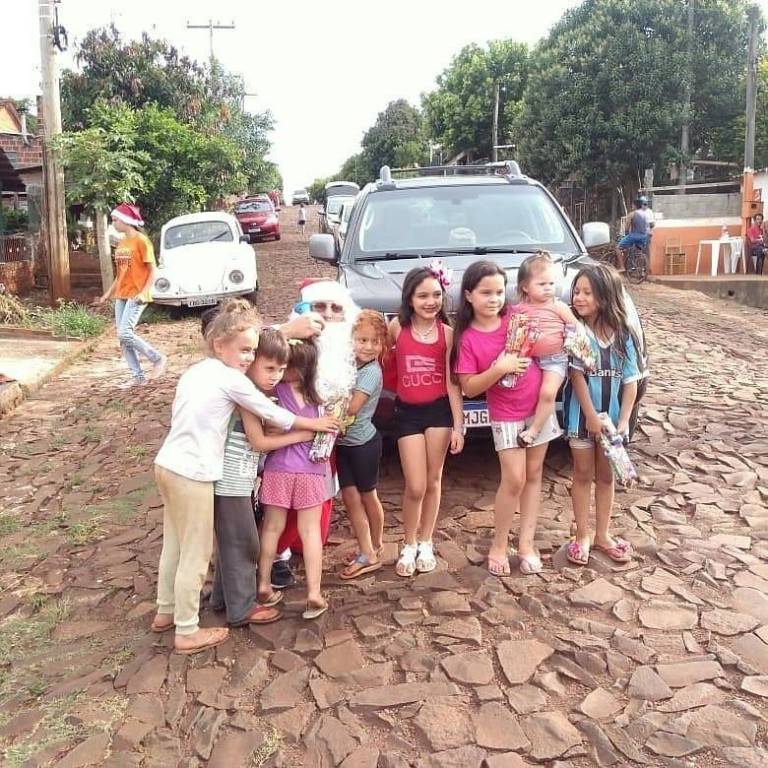 Depois de muitos dias arrecadando brinquedos para o Papai Noel, chegou a hora de distribuir para quem mais precisa. Em parceria com empresas locais @interact_tm @tmleoclube @trilheirosvigaristas @jem_tm_ @emaustresdemaio conseguimos arrecadar 3 mil brinquedos. Onde a distribuição seguiu sendo nos bairros em que as crianças nem sempre tem condições de ganhar algo na época de Natal, também fomos até interior do município ????