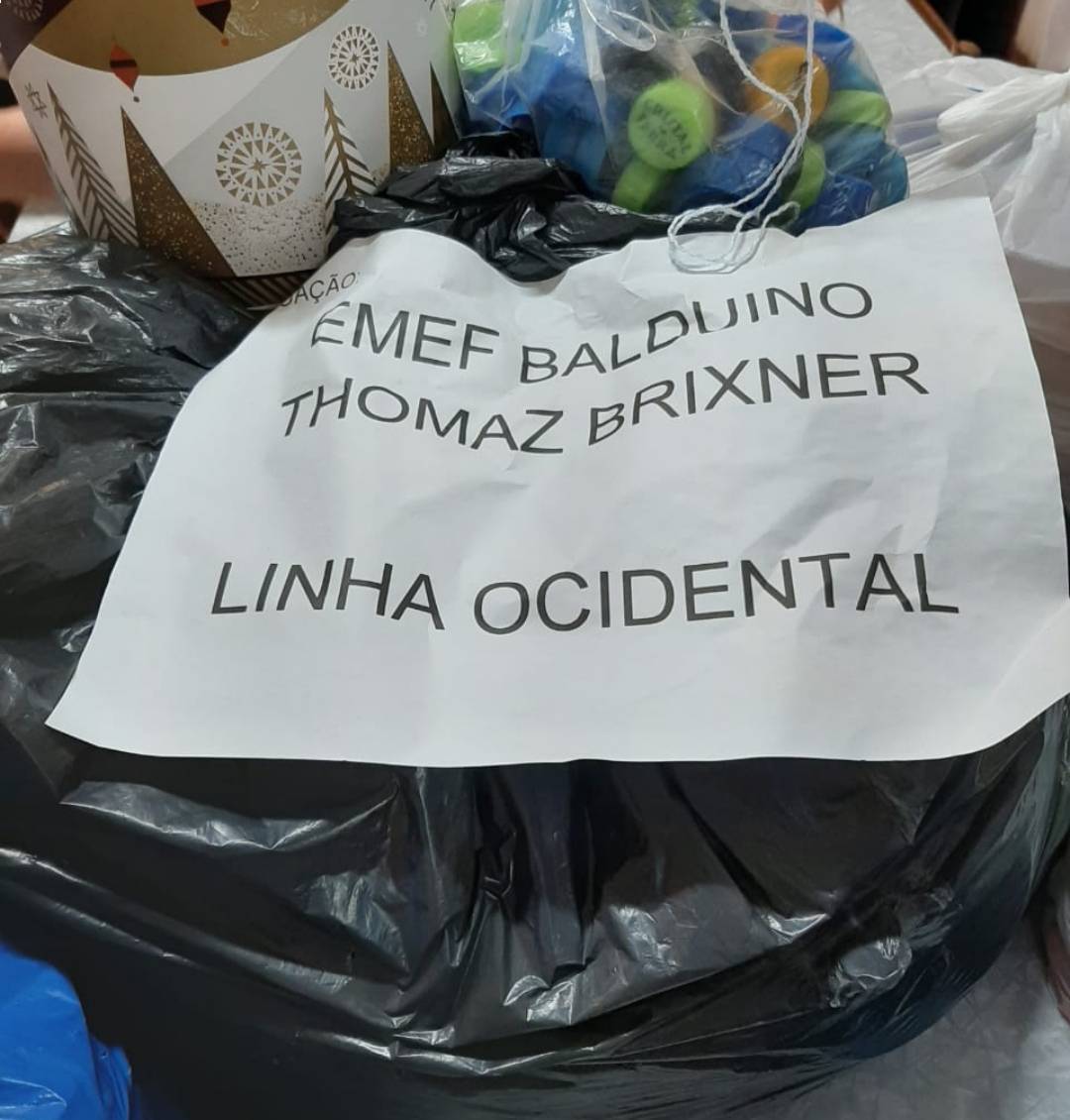 Foi na manhã, do dia 04, que a EMEF Balduíno Brixner deixou no Colégio Sagrado Coração de Jesus, um enorme saco lotadinho de tampinhas.