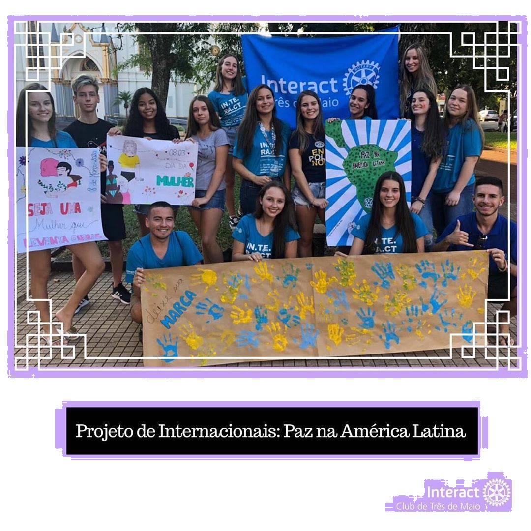 Durante a tarde de domingo, dia 08/03, foi realizado um Projeto de Internacionais. Fomos convidados pelo @interact_cali para mostrarmos nosso apoio a PAZ NA AMÉRICA LATINA, através de um cartaz onde as pessoas de nosso município pudessem contribuir deixando sua marca com a própria mão. O objetivo do Projeto é apoiar o fim das crises que vêm acontecendo na América Latina. Obrigada a todos que participaram!! ????????