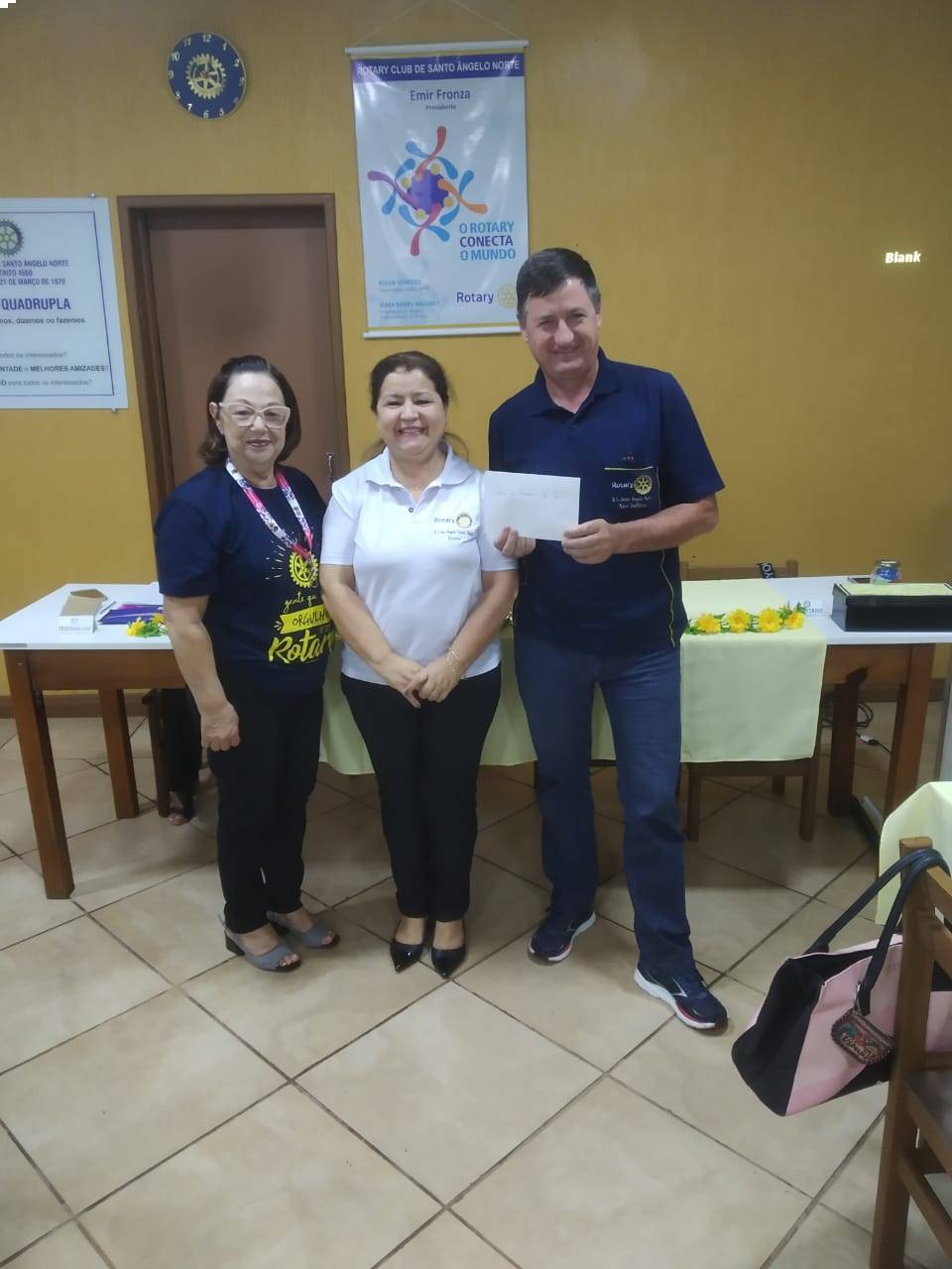 Foi realizada na última reunião, a entrega do cheque, no valor repassado pelo distrito, ao projeto que realizamos no Lar da Menina, referente a revitalização do refeitório.