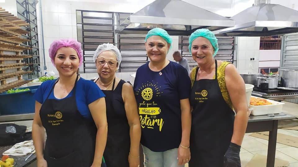 Nossas Companheiras, além de ficarem responsáveis pela sobremesa, auxiliaram na cozinha, fazendo as saladas, polenta, arroz. Mais uma caminhada juntos, através do voluntariado.